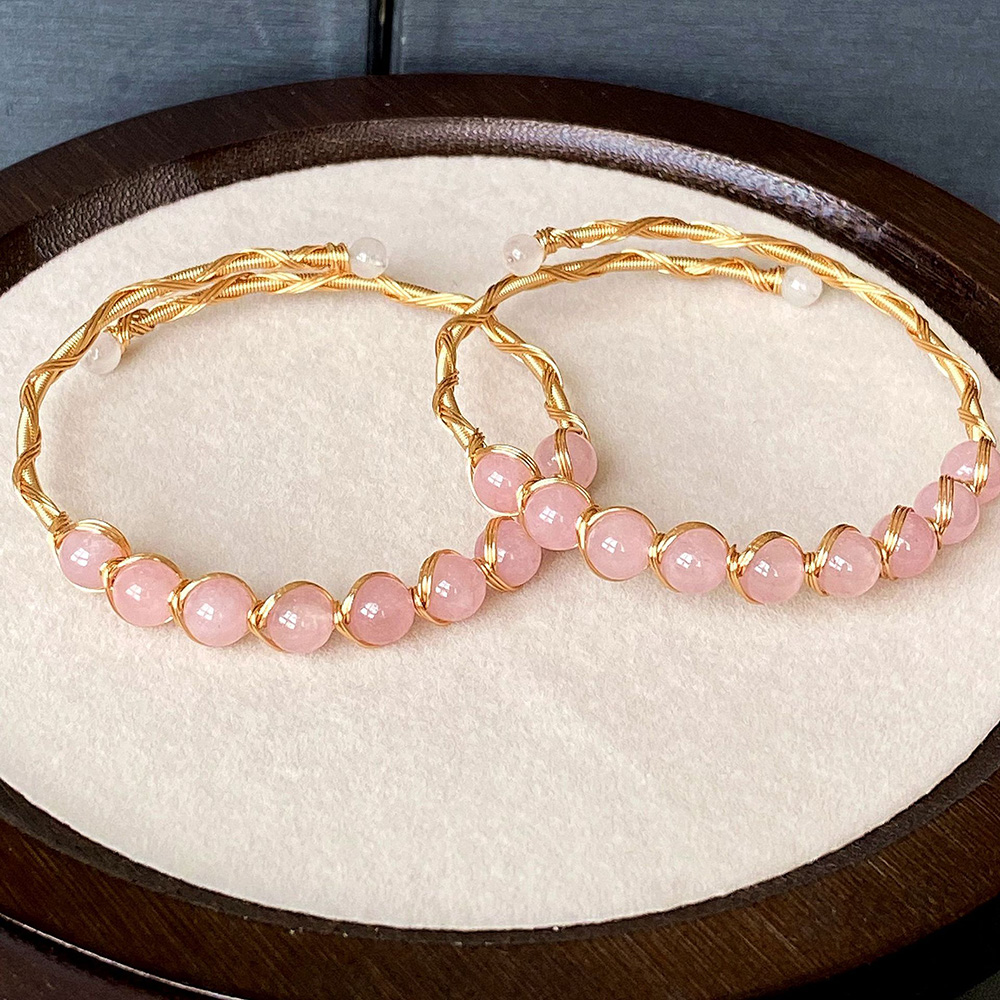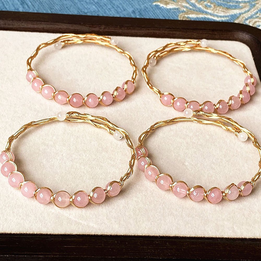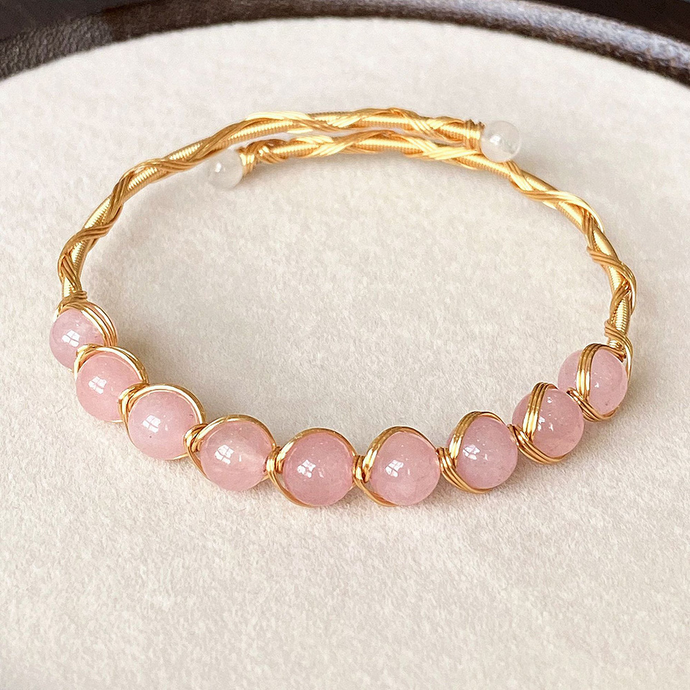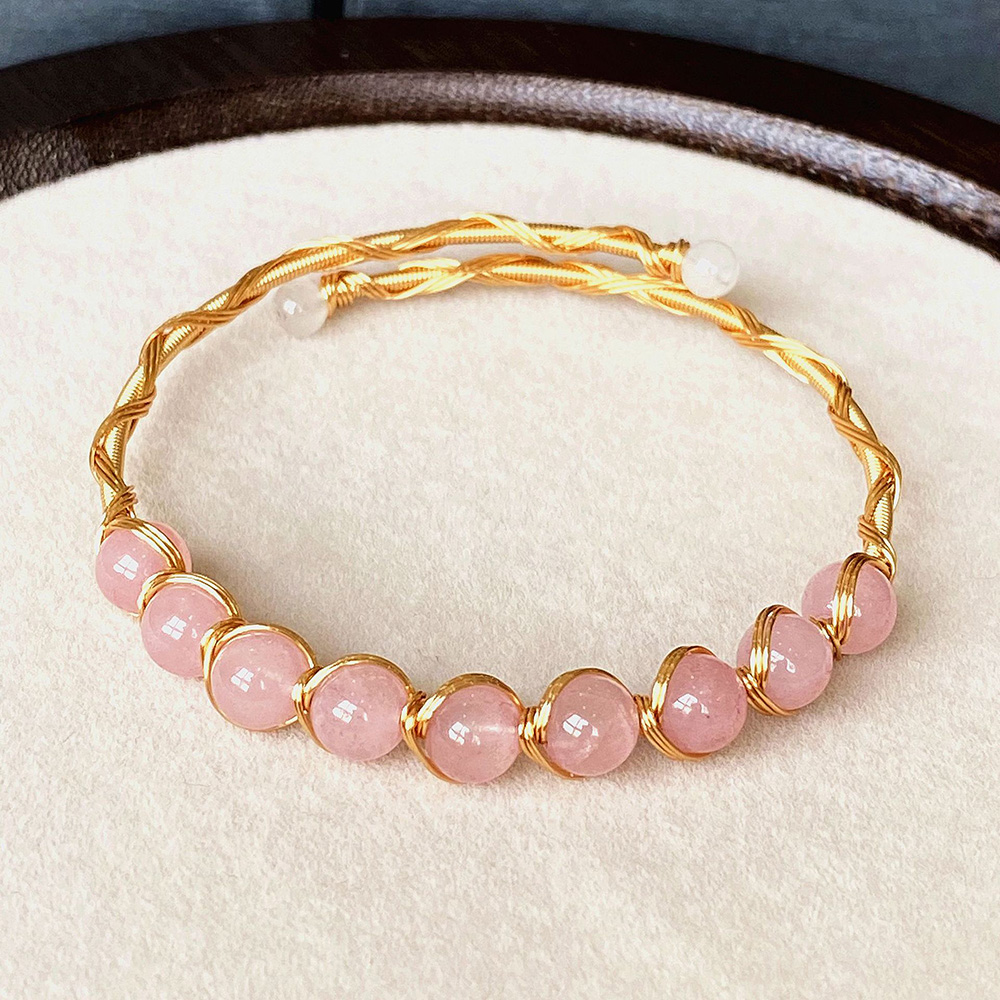 Bracelets quartz, laiton, avec quartz rose, 14K rempli d’or, bijoux de mode & pour femme, Inner diameter :55mm, Vendu par PC