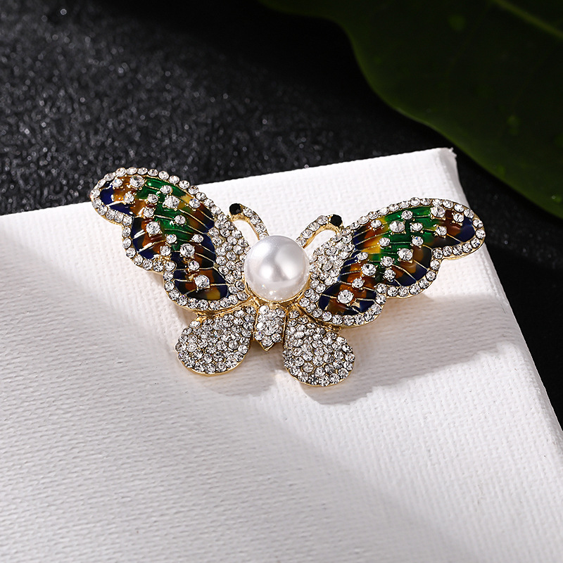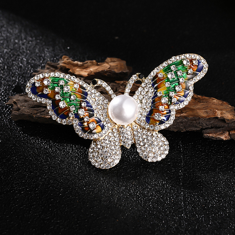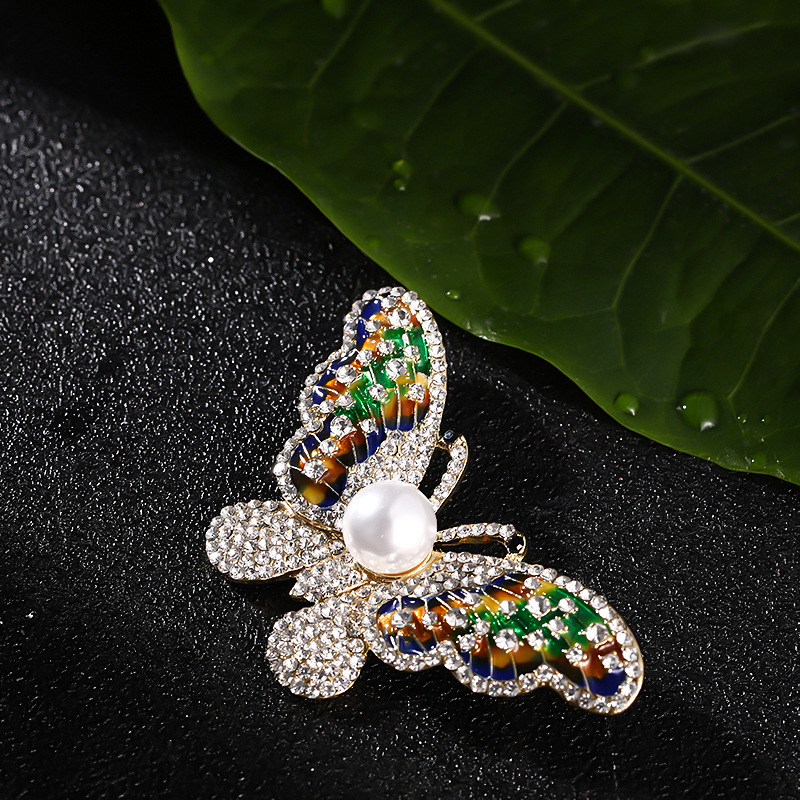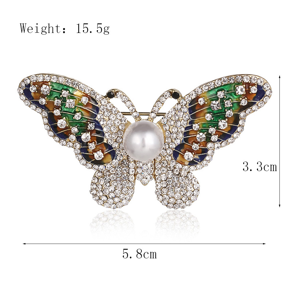 Broche de strass, alliage de zinc, avec perle de plastique, papillon, Placage, pour femme & émail & avec strass, Vendu par PC