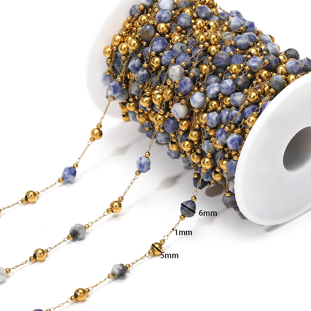 Chaîne de perles de pierre gemme, Acier inoxydable 304, avec pierre gemme, Placage de couleur d'or, DIY, plus de couleurs à choisir, 25m/sac, Vendu par sac
