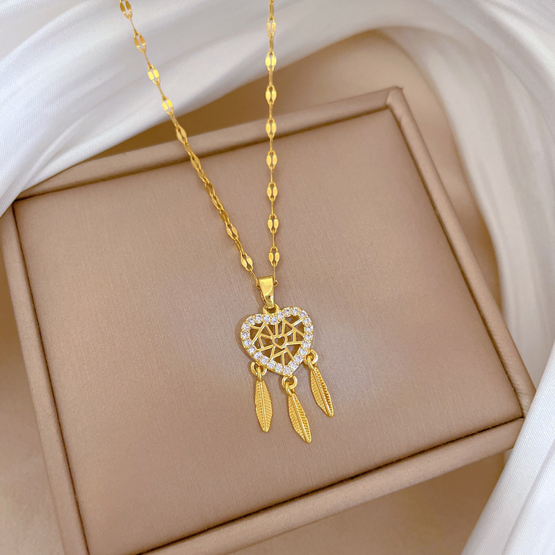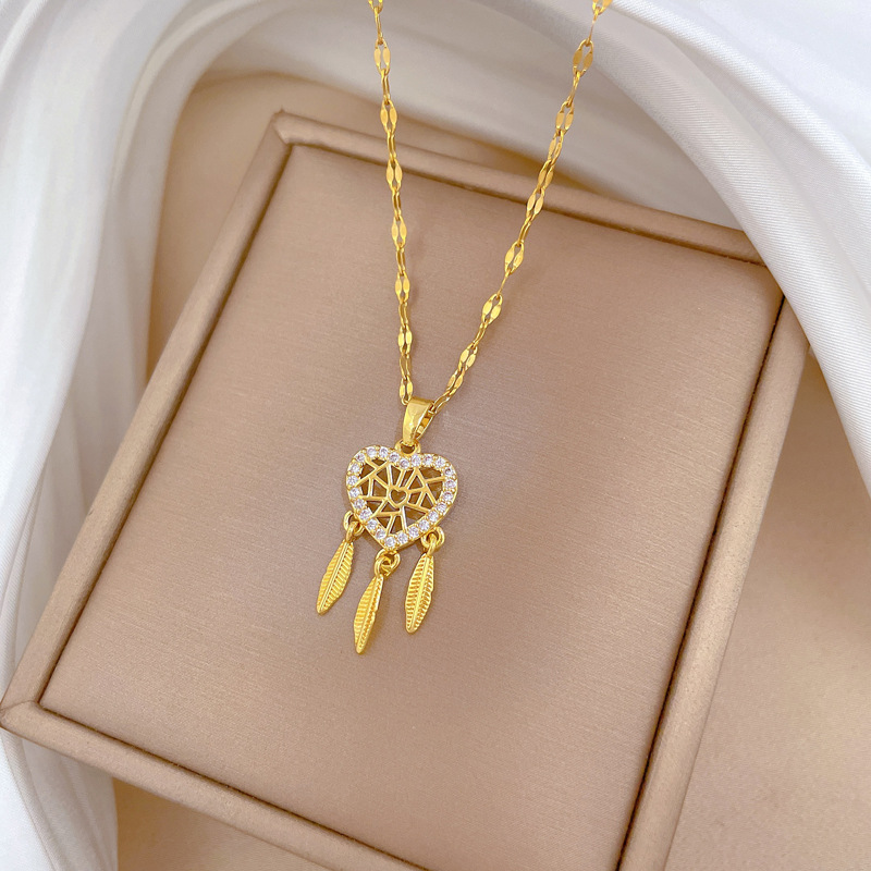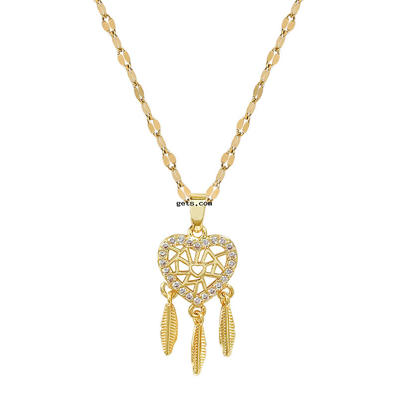 Collier d'acier titane, avec laiton, Placage, pavé de micro zircon & pour femme & creux, plus de couleurs à choisir, Longueur:Environ 21-50 cm, Vendu par PC