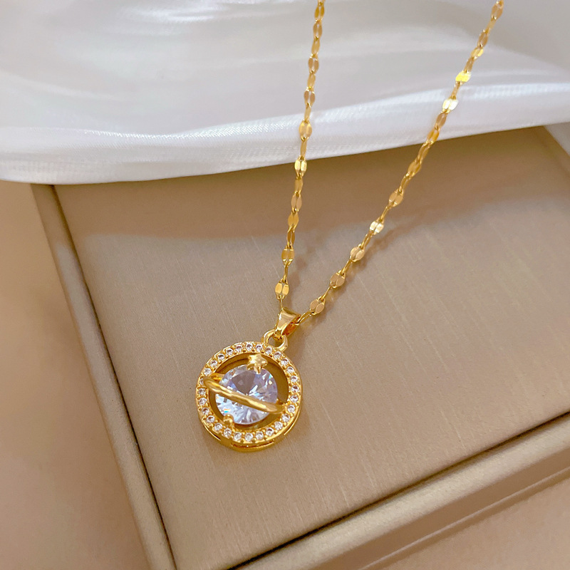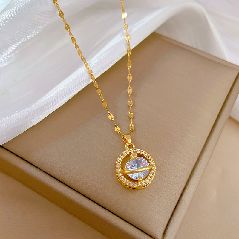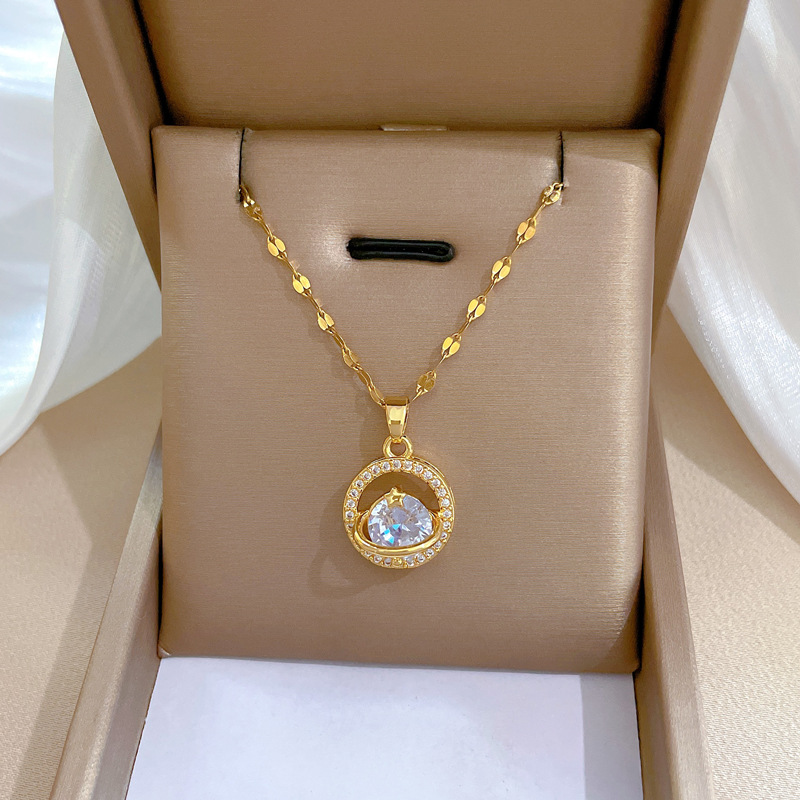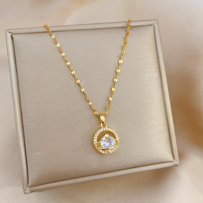 Collier d'acier titane, avec laiton, Placage, pavé de micro zircon & pour femme & creux, doré, Longueur:Environ 21-50 cm, Vendu par PC