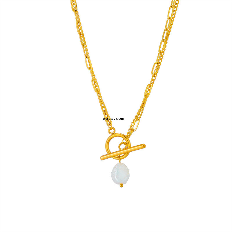Collier d'acier titane, avec perle de plastique, Placage, Double couche & bijoux de mode & pour femme, doré, Vendu par PC