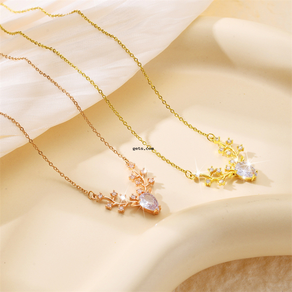 Collier d'acier titane, Placage, bijoux de mode & pavé de micro zircon & pour femme, plus de couleurs à choisir, Vendu par PC