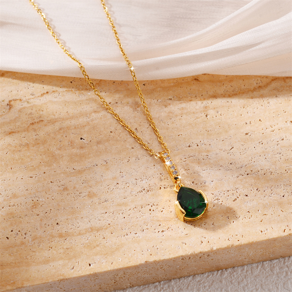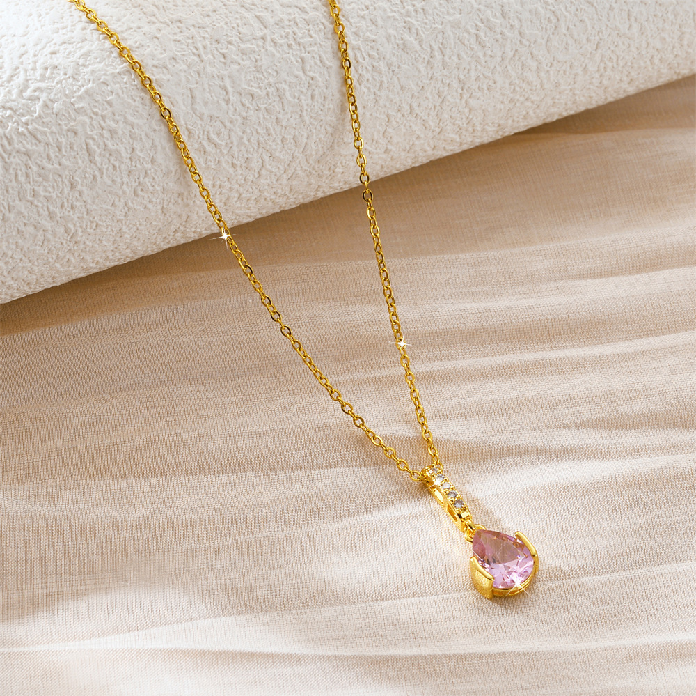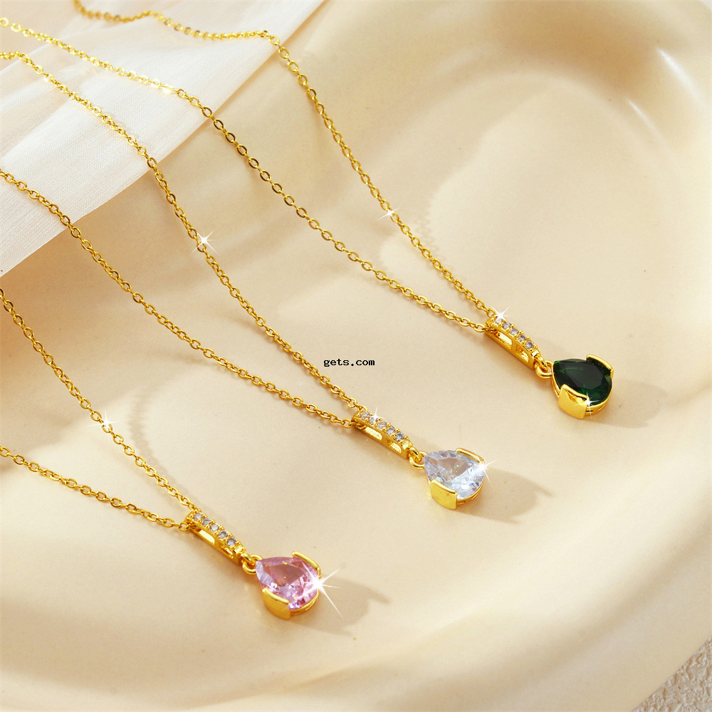 Collier d'acier titane, larme, Placage, bijoux de mode & pavé de micro zircon & pour femme, plus de couleurs à choisir, Vendu par PC