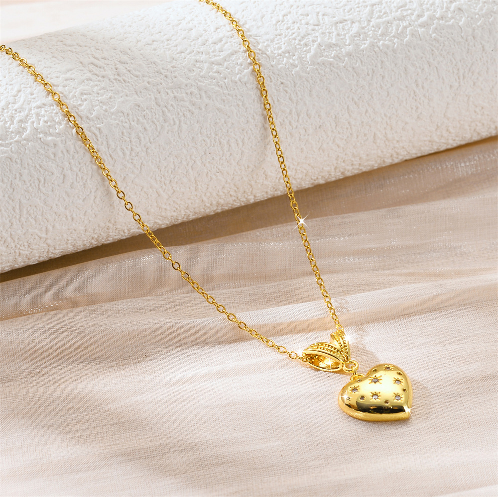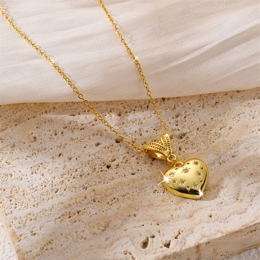 Collier d'acier titane, avec laiton, coeur, Placage, bijoux de mode & pavé de micro zircon & pour femme, plus de couleurs à choisir, Vendu par PC