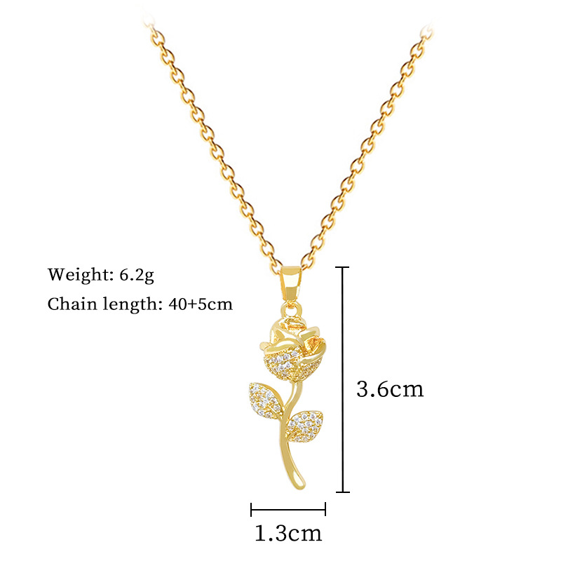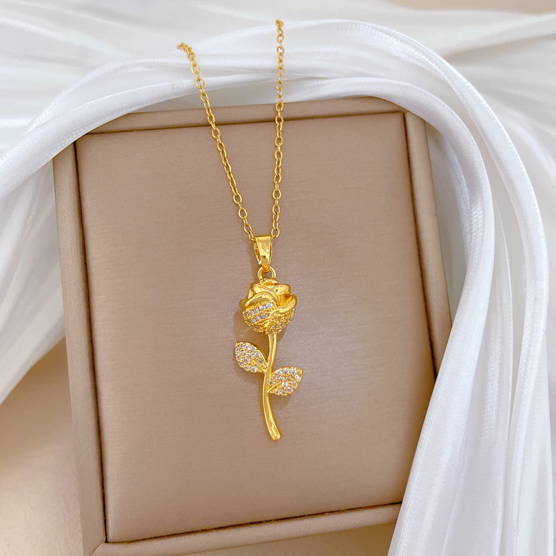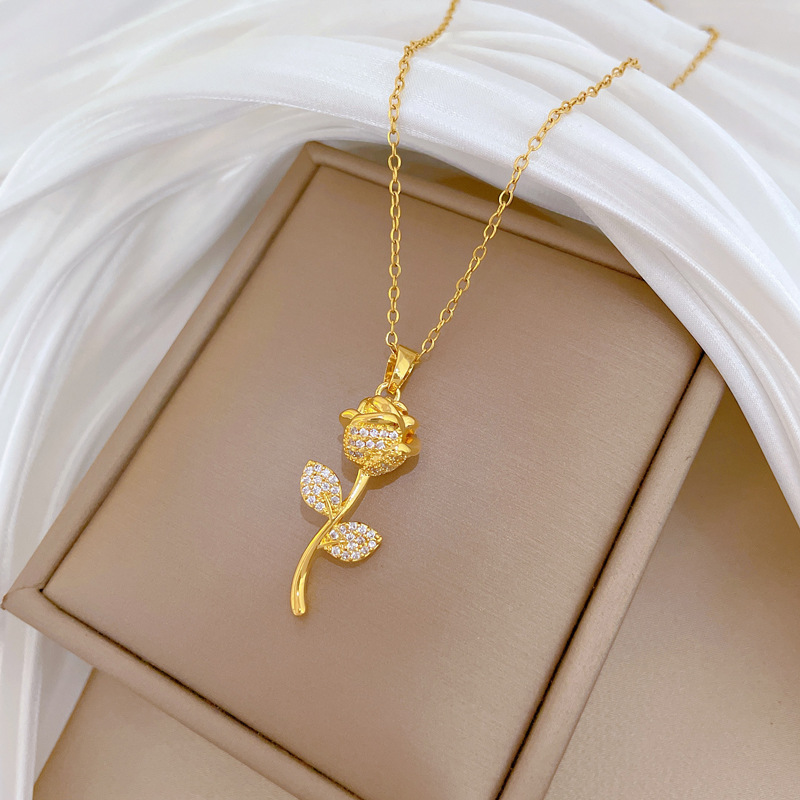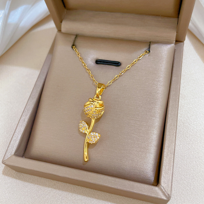 Collier d'acier titane, avec laiton, Rose, bijoux de mode & pavé de micro zircon & pour femme, doré, Vendu par PC