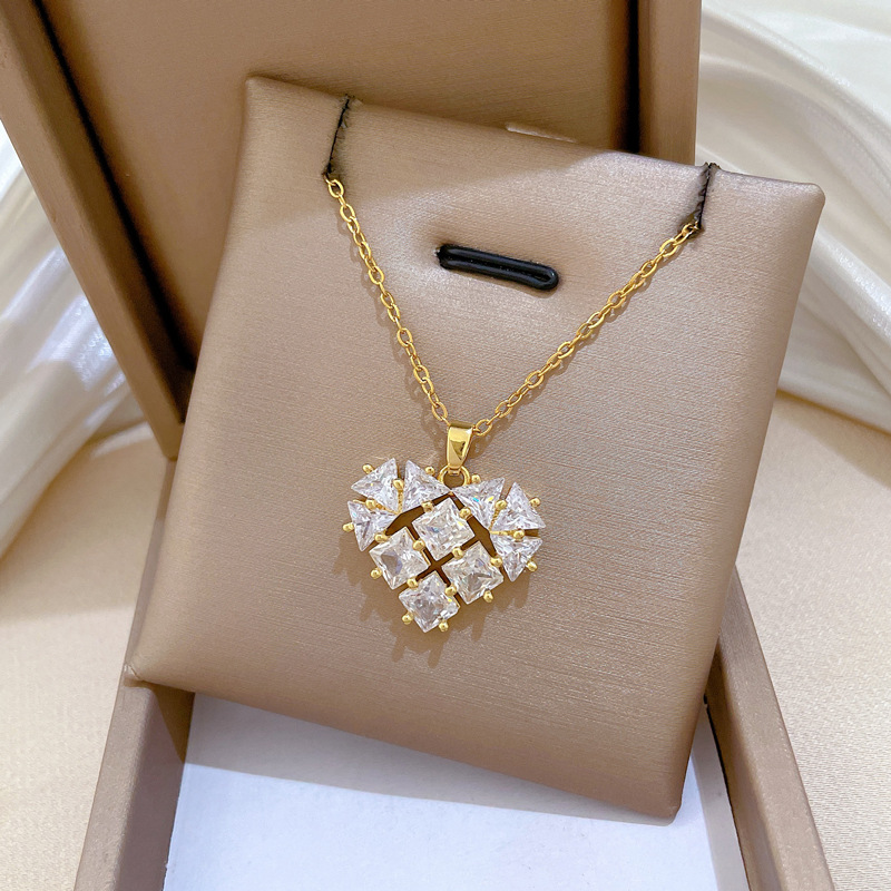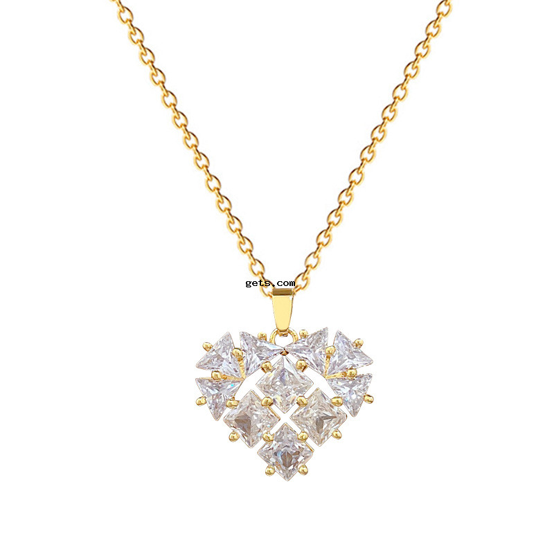 Collier d'acier titane, avec laiton, coeur, pavé de micro zircon & pour femme & creux, doré, Vendu par PC