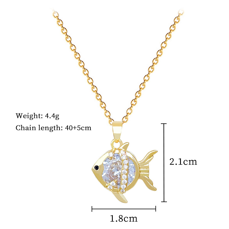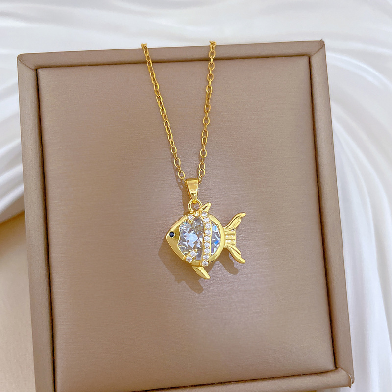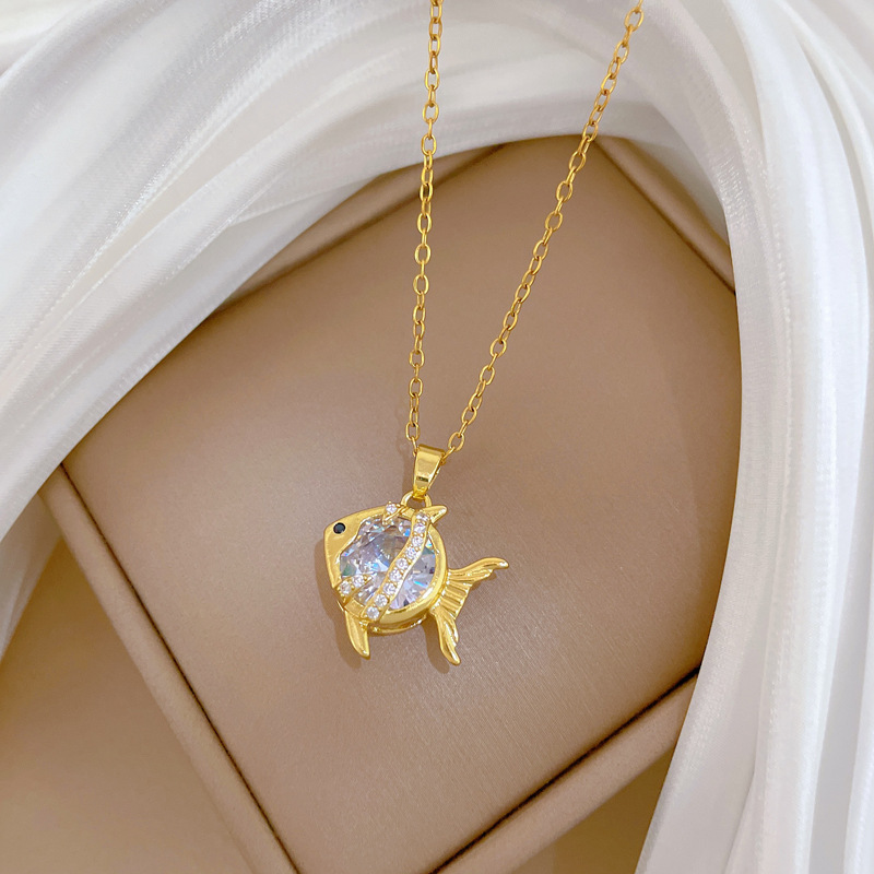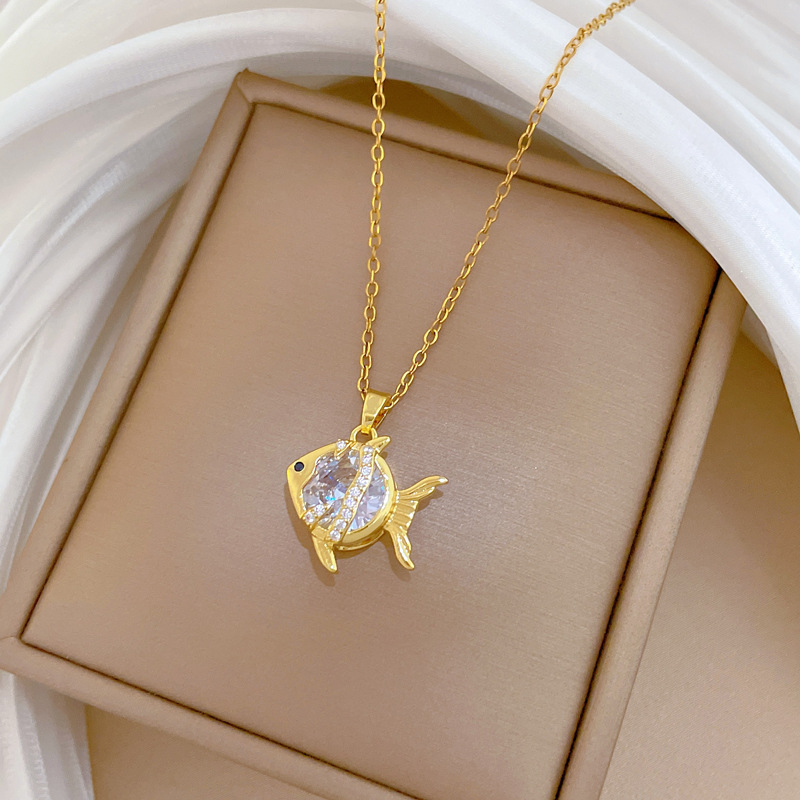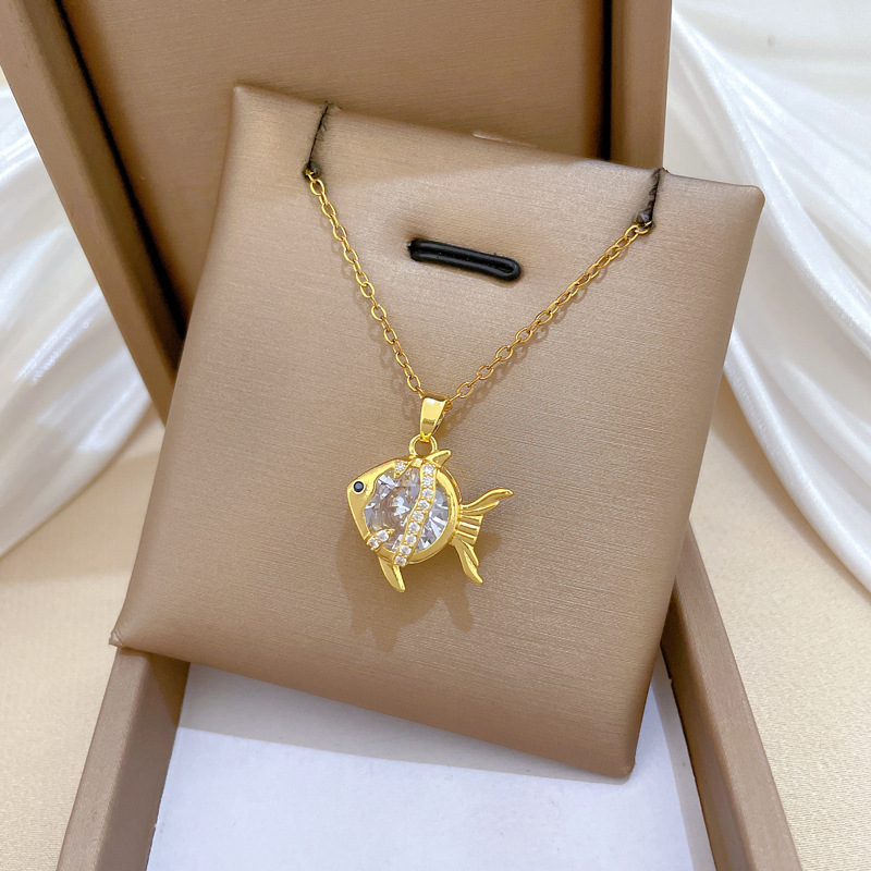 Collier d'acier titane, avec laiton, poisson rouge, bijoux de mode & pavé de micro zircon & pour femme, doré, Vendu par PC
