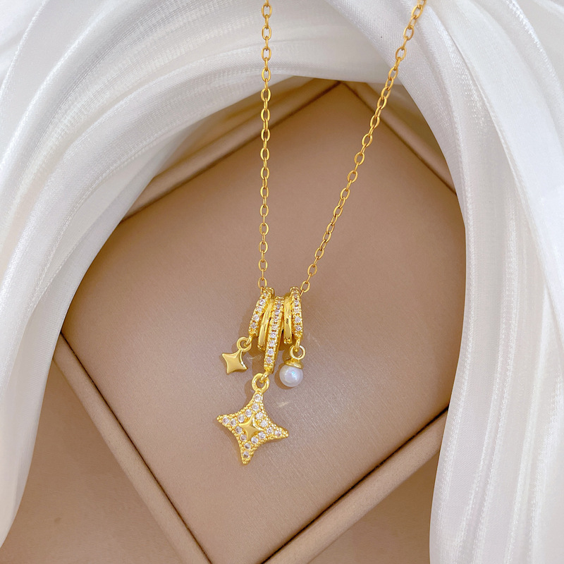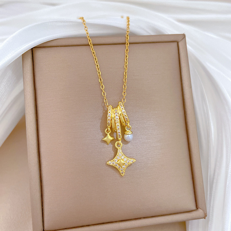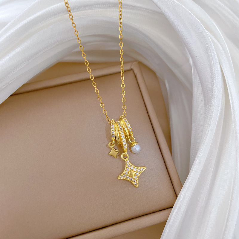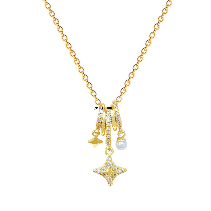 Collier d'acier titane, avec perle de plastique & laiton, bijoux de mode & pavé de micro zircon & pour femme, doré, Vendu par PC