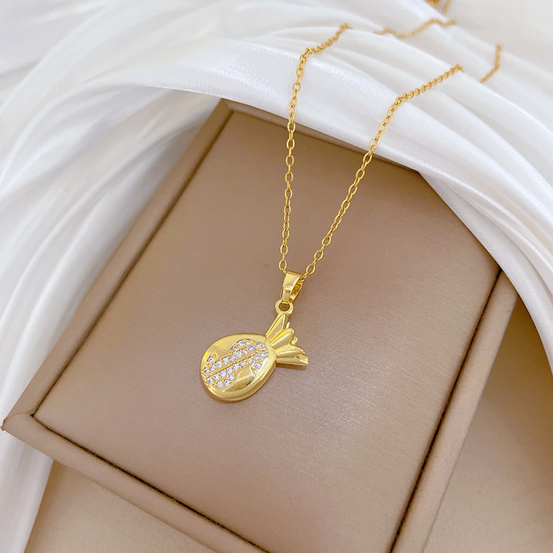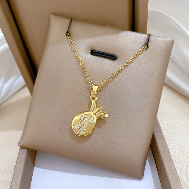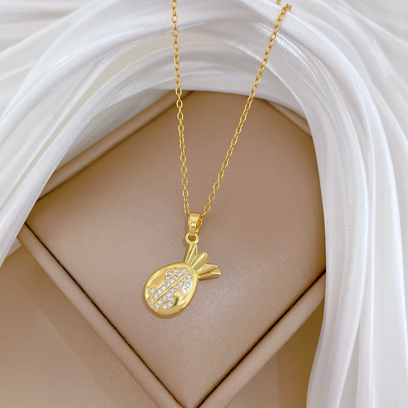 Collier d'acier titane, avec laiton, bijoux de mode & pavé de micro zircon & pour femme, doré, Vendu par PC