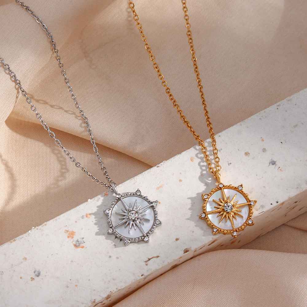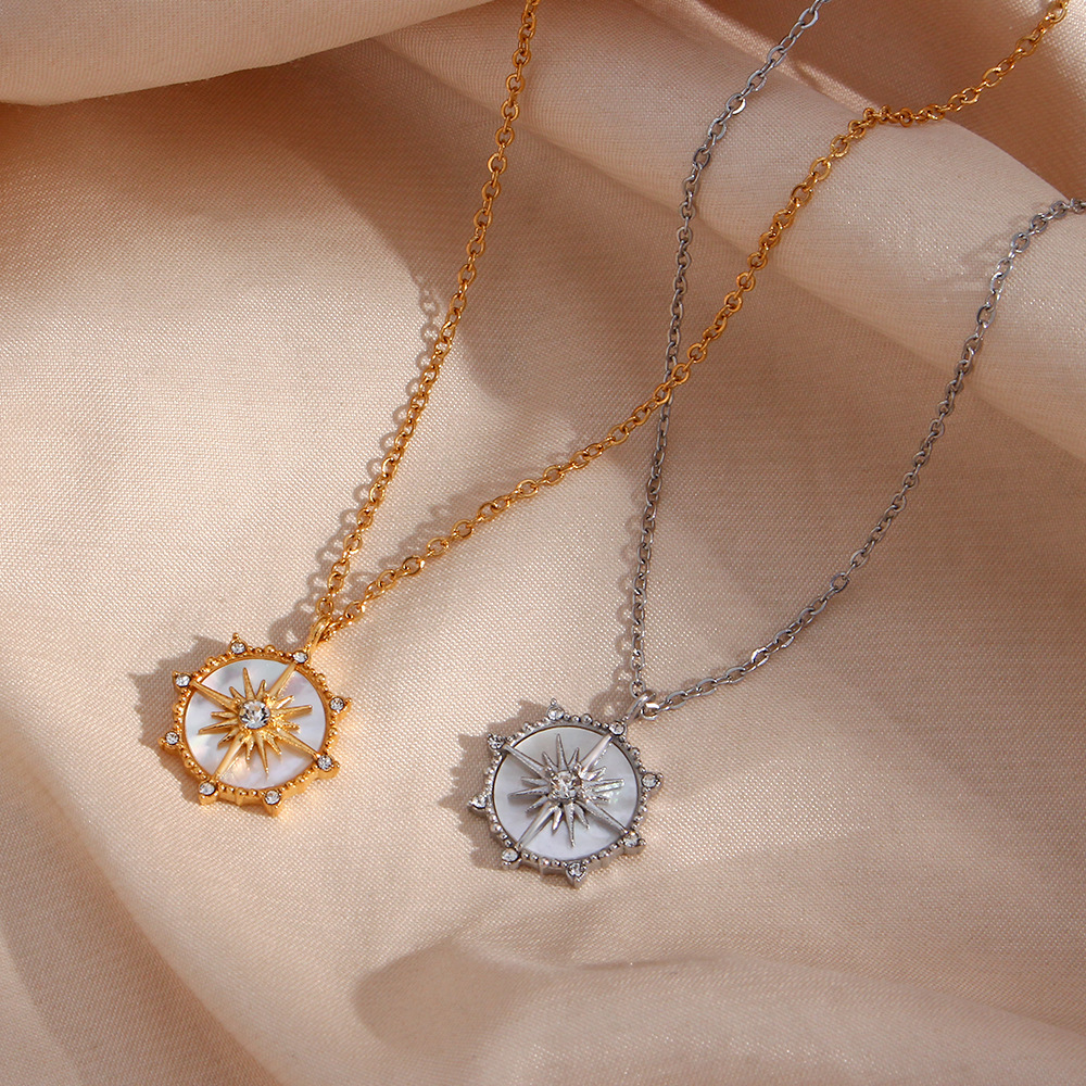 Collier de bijoux en acier inoxydable, Acier inoxydable 304, avec coquille blanche, Placage, bijoux de mode & pavé de micro zircon & pour femme, plus de couleurs à choisir, Vendu par PC