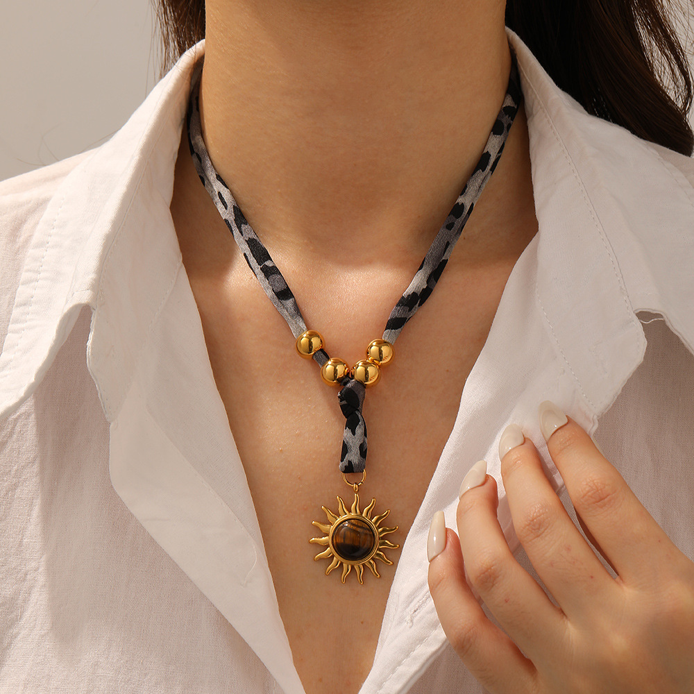 - Collier de bijoux en acier inoxydable, Acier inoxydable 304, avec Turquoise africain & opale rose & Pierre jaune & oeil de tigre