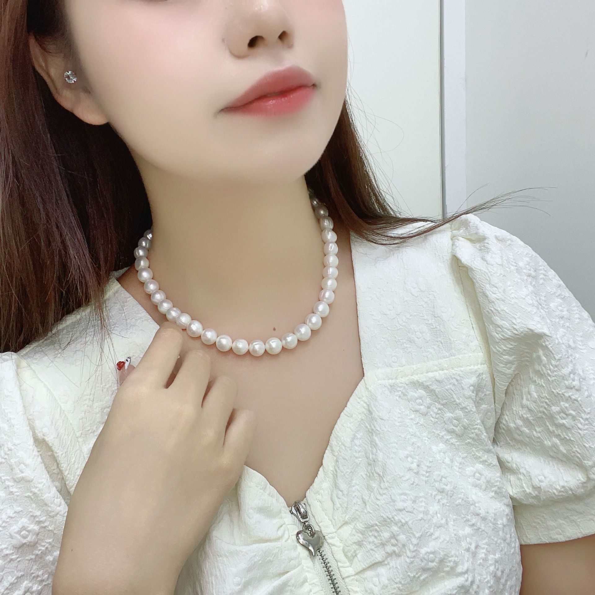 - Collier de chaîne en laiton de perles d'eau douce, perle d'eau douce cultivée, avec laiton