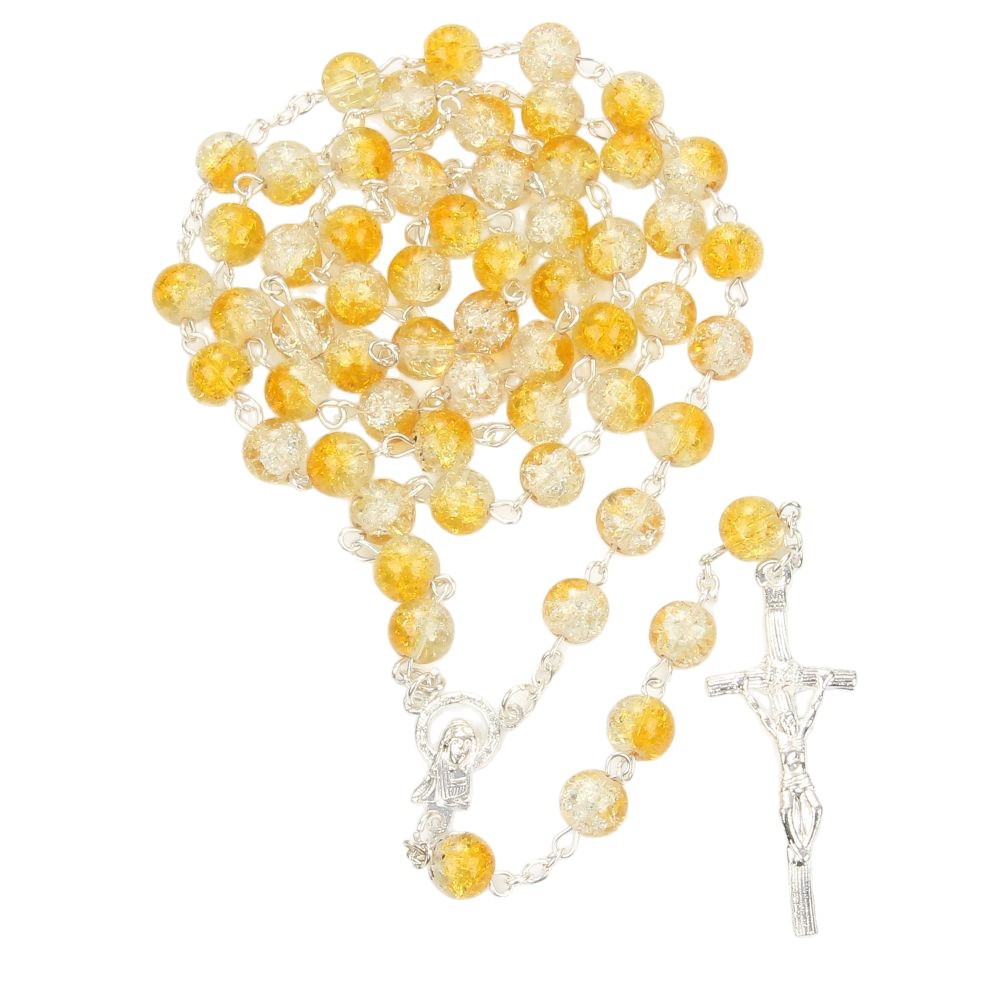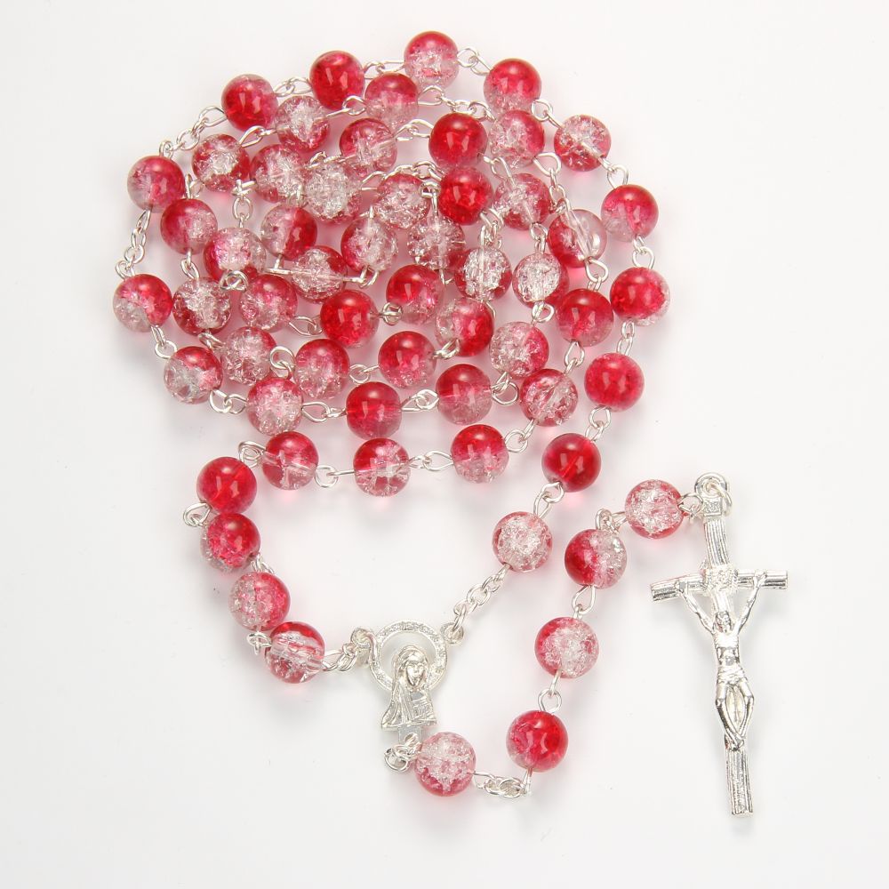 Collier de chapelet, alliage de zinc, avec résine, croix, Placage de couleur argentée, bijoux de mode, plus de couleurs à choisir, 6mm, Longueur:67 cm, Vendu par PC