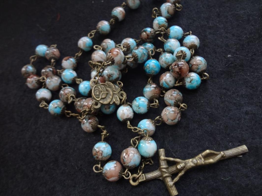 - Collier de chapelet, pierre de grain, avec Hématite