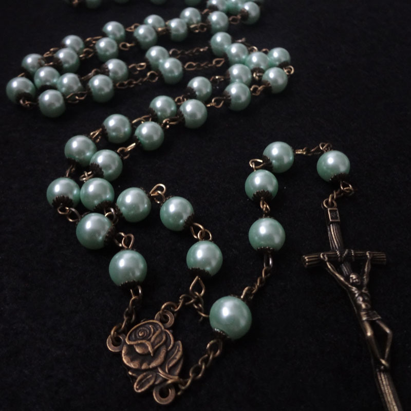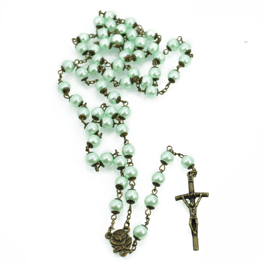 Collier de chapelet, alliage de zinc, avec verre, croix, Placage, bijoux de mode, plus de couleurs à choisir, 50x20mm, Longueur:88 cm, Vendu par PC