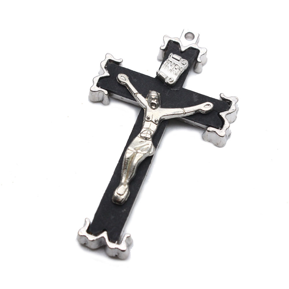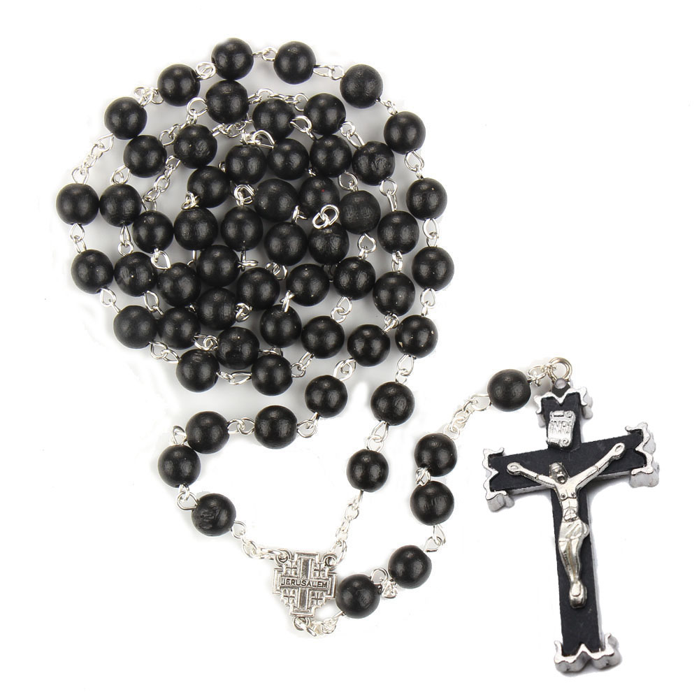 Collier de chapelet, alliage de zinc, avec bois, croix, Placage, bijoux de mode, noire, 8mm, Longueur:72 cm, Vendu par PC
