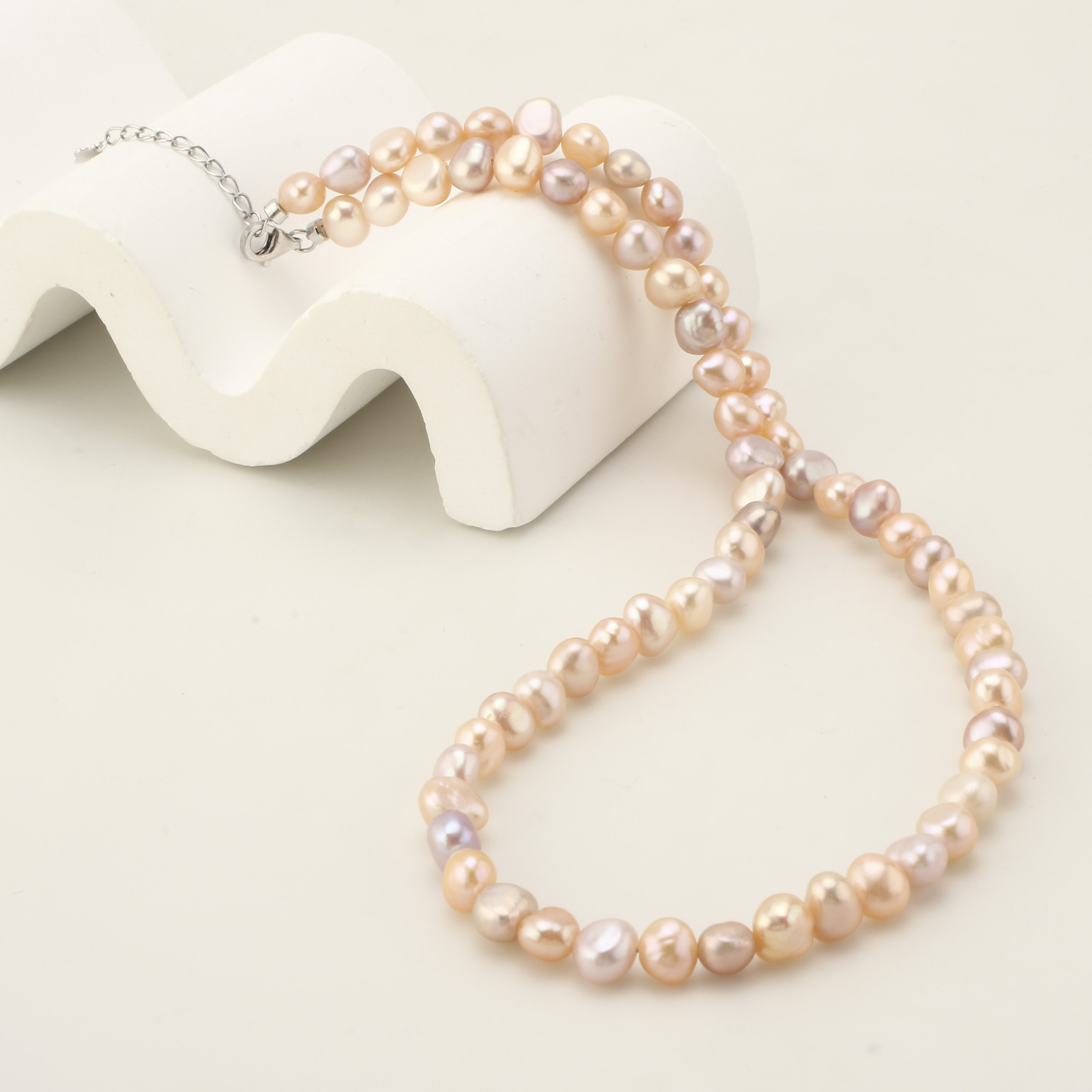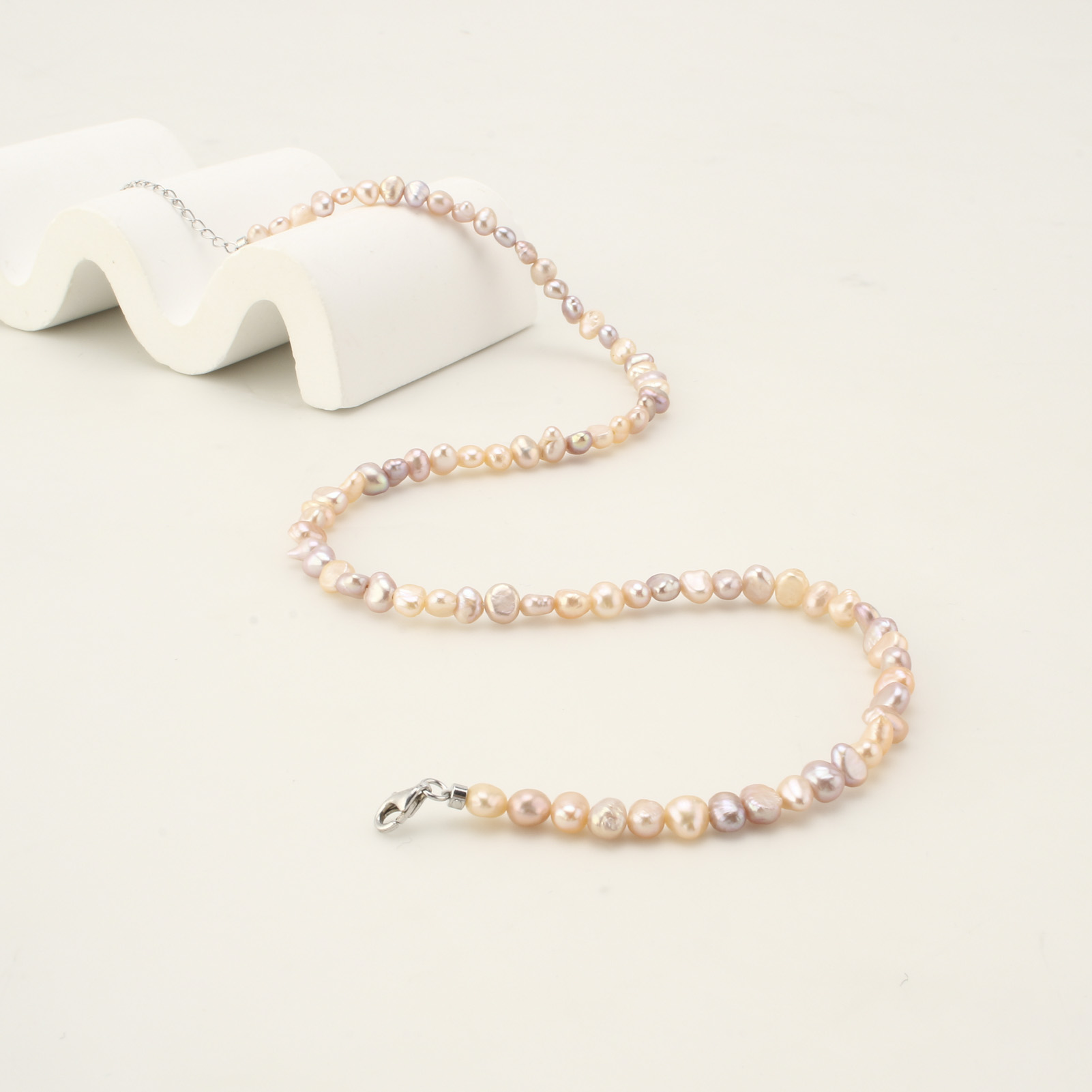 Collier de perles d'eau douce naturelles, perle d'eau douce cultivée, avec Acier inoxydable 304, Baroque, bijoux de mode, couleurs mélangées, 7-8mm, Vendu par 44 cm brin