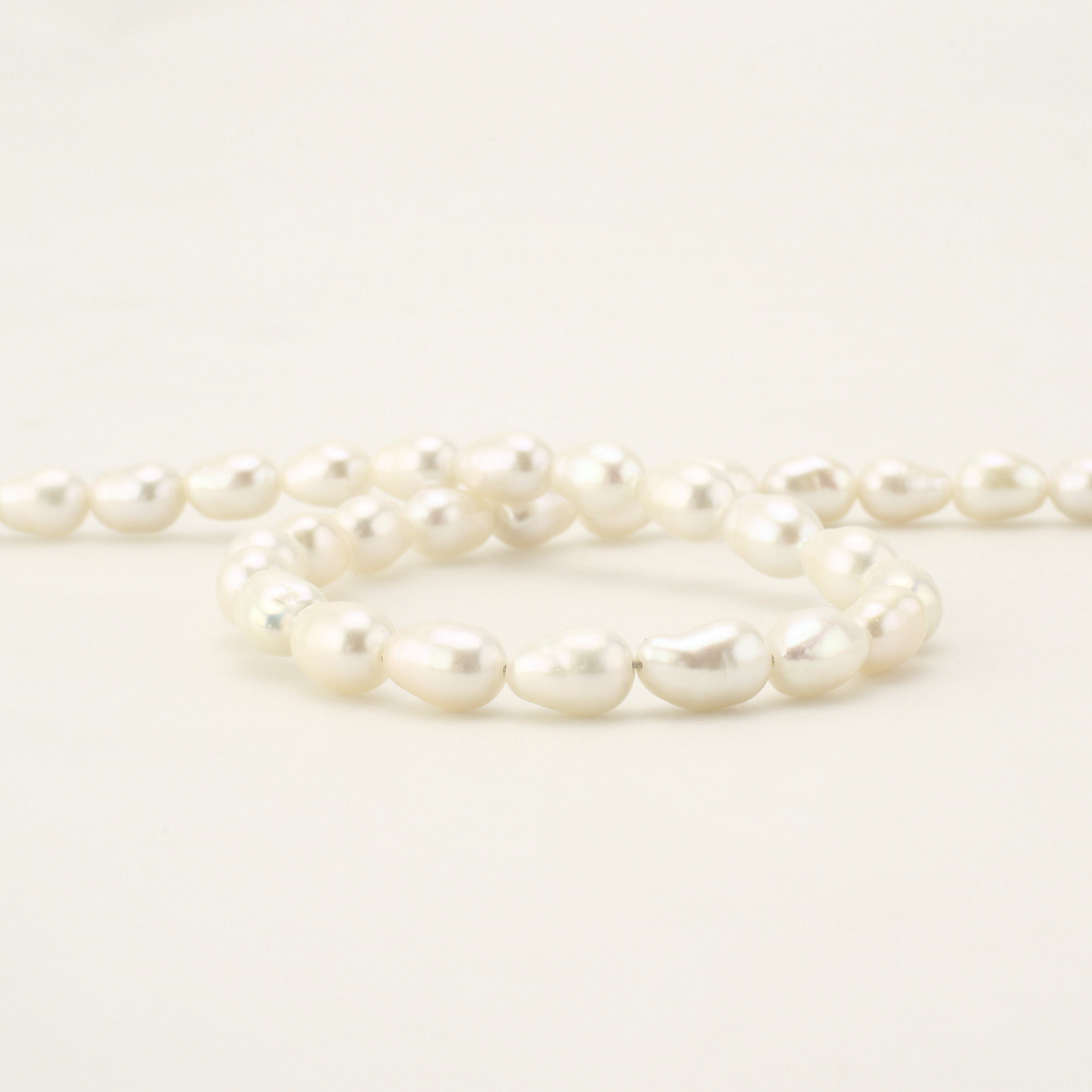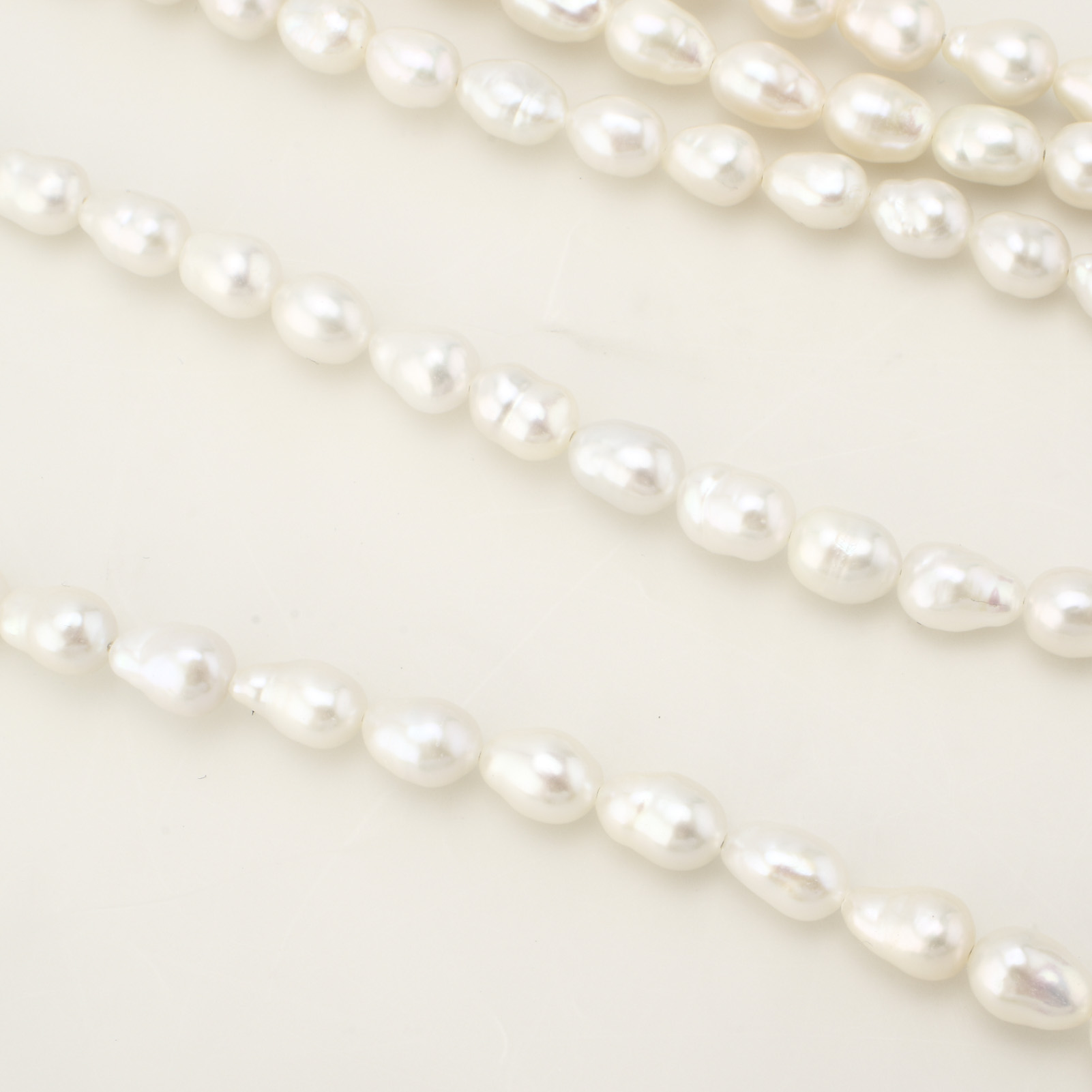 Collier de perles d'eau douce naturelles, perle d'eau douce cultivée, avec Argent sterling 925, Placage de couleur d'or, bijoux de mode, blanc, 7x9mm, Vendu par brin