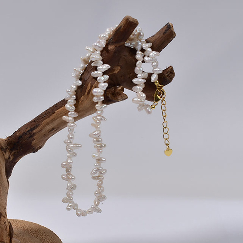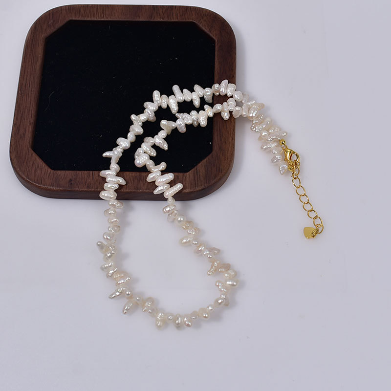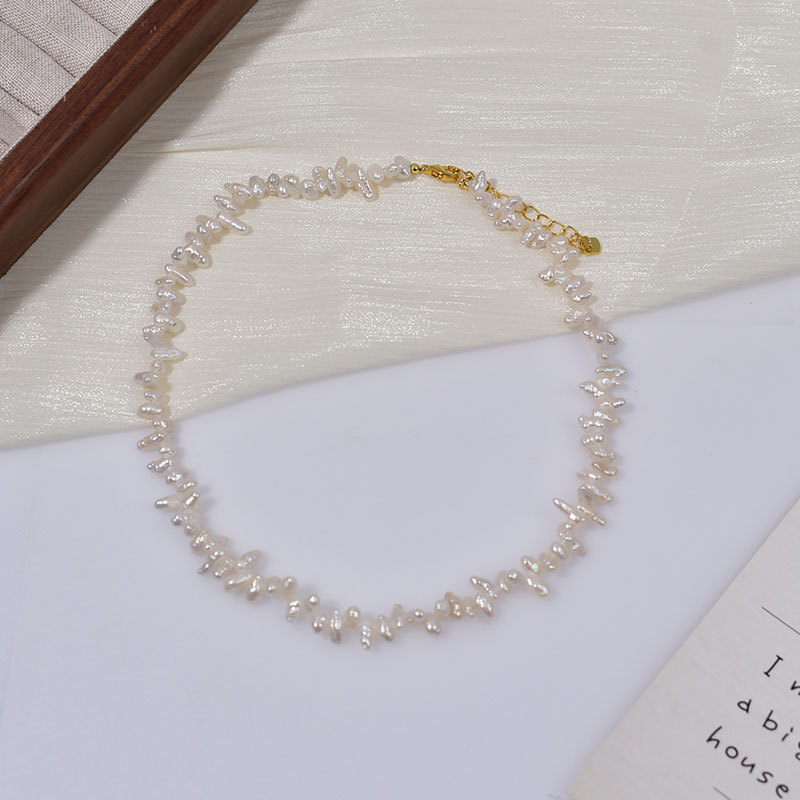 Collier de perles en argent sterling 925, avec perle d'eau douce cultivée, Baroque, bijoux de mode, blanc, 7-8mm, Longueur:43 cm, Vendu par PC