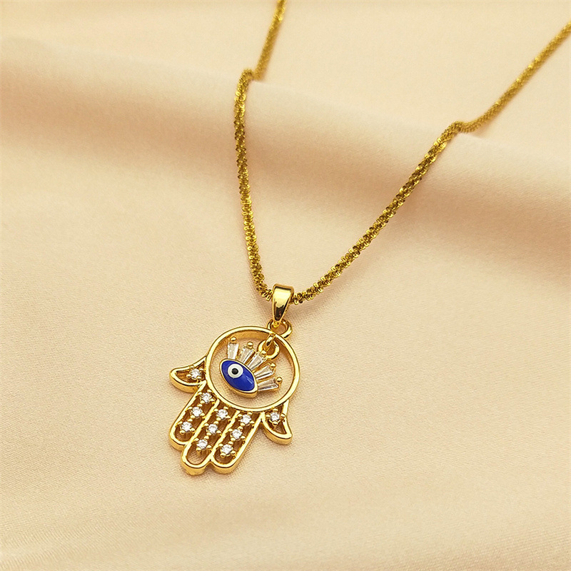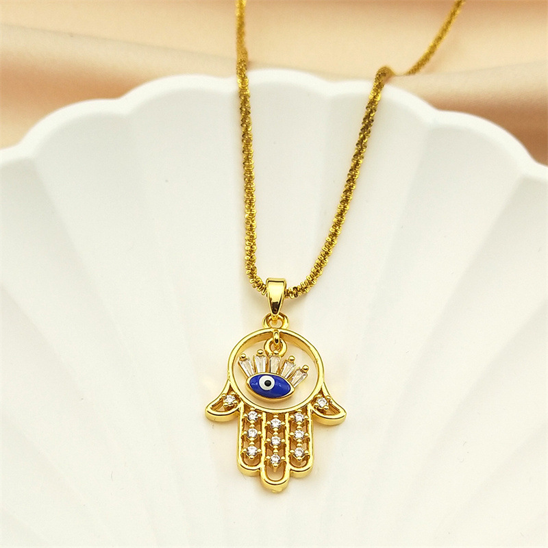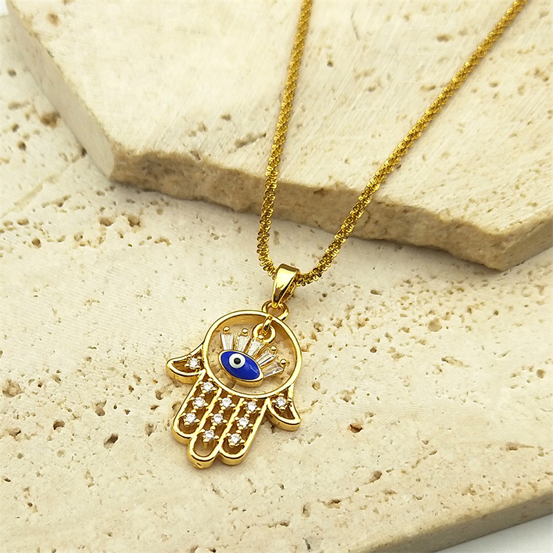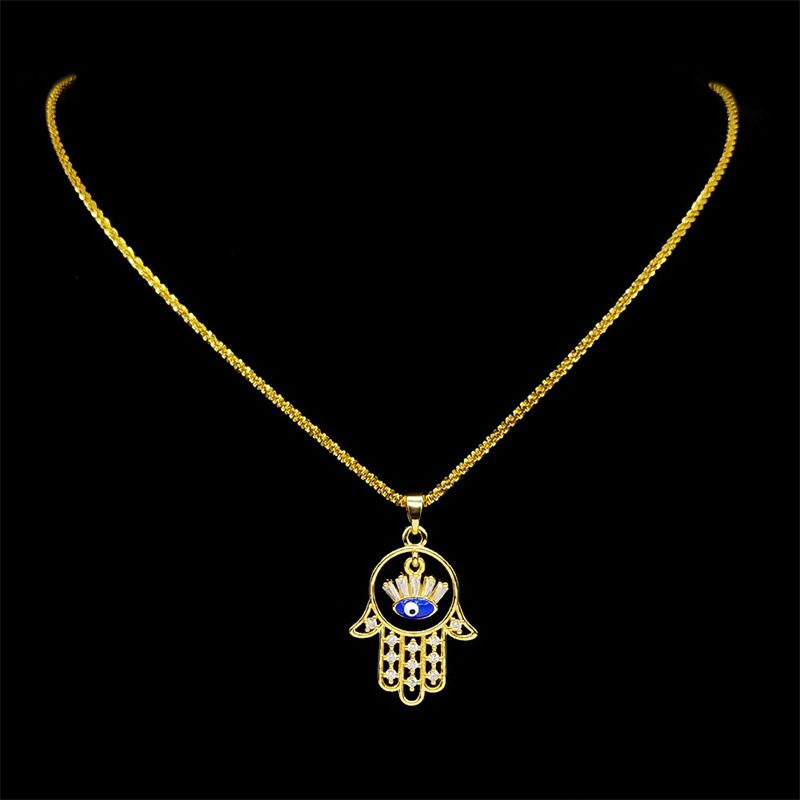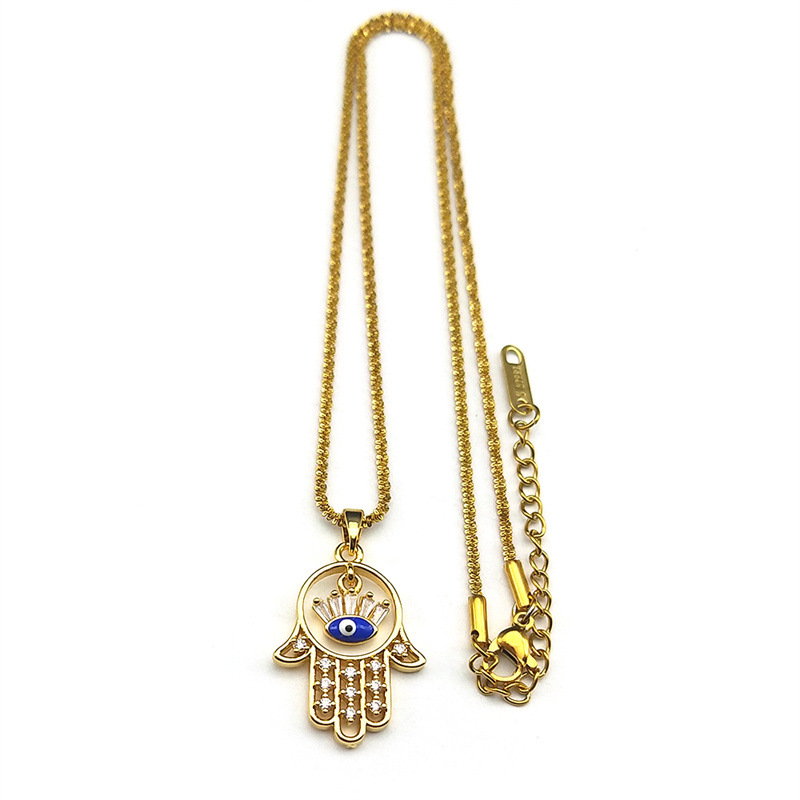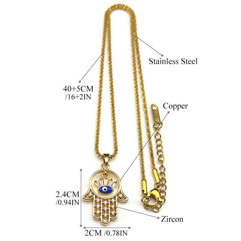 Collier en laiton cubique Zircon Micro Pave, avec 5cm chaînes de rallonge, main, Placage de couleur d'or, bijoux de mode & pavé de micro zircon, doré, protéger l'environnement, sans nickel, plomb et cadmium, 16x21mm, Longueur:45 cm, Vendu par PC