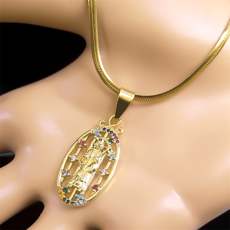 Collier en laiton cubique Zircon Micro Pave, Plat rond, Placage de couleur d'or