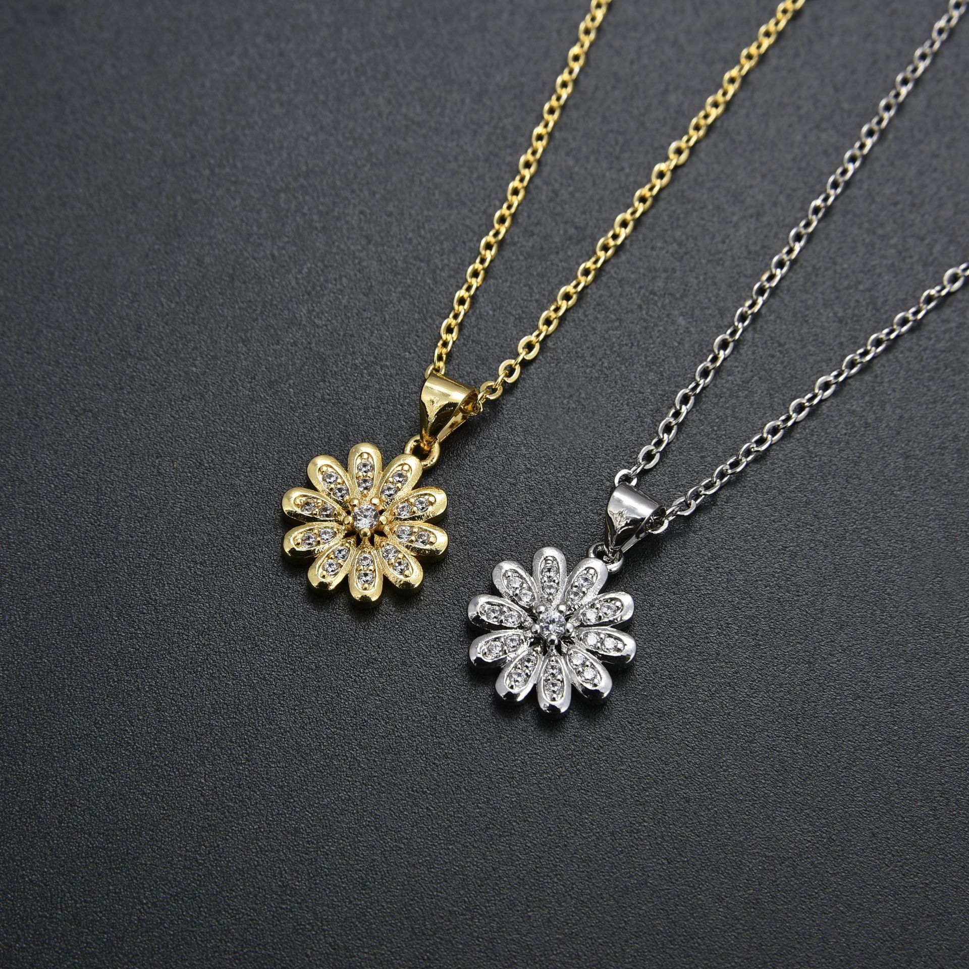 Collier en laiton cubique Zircon Micro Pave, margueritepâquerette, Placage, bijoux de mode & pavé de micro zircon, plus de couleurs à choisir, protéger l'environnement, sans nickel, plomb et cadmium, Longueur:45 cm, Vendu par PC