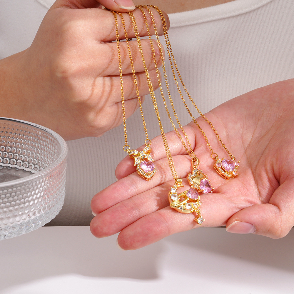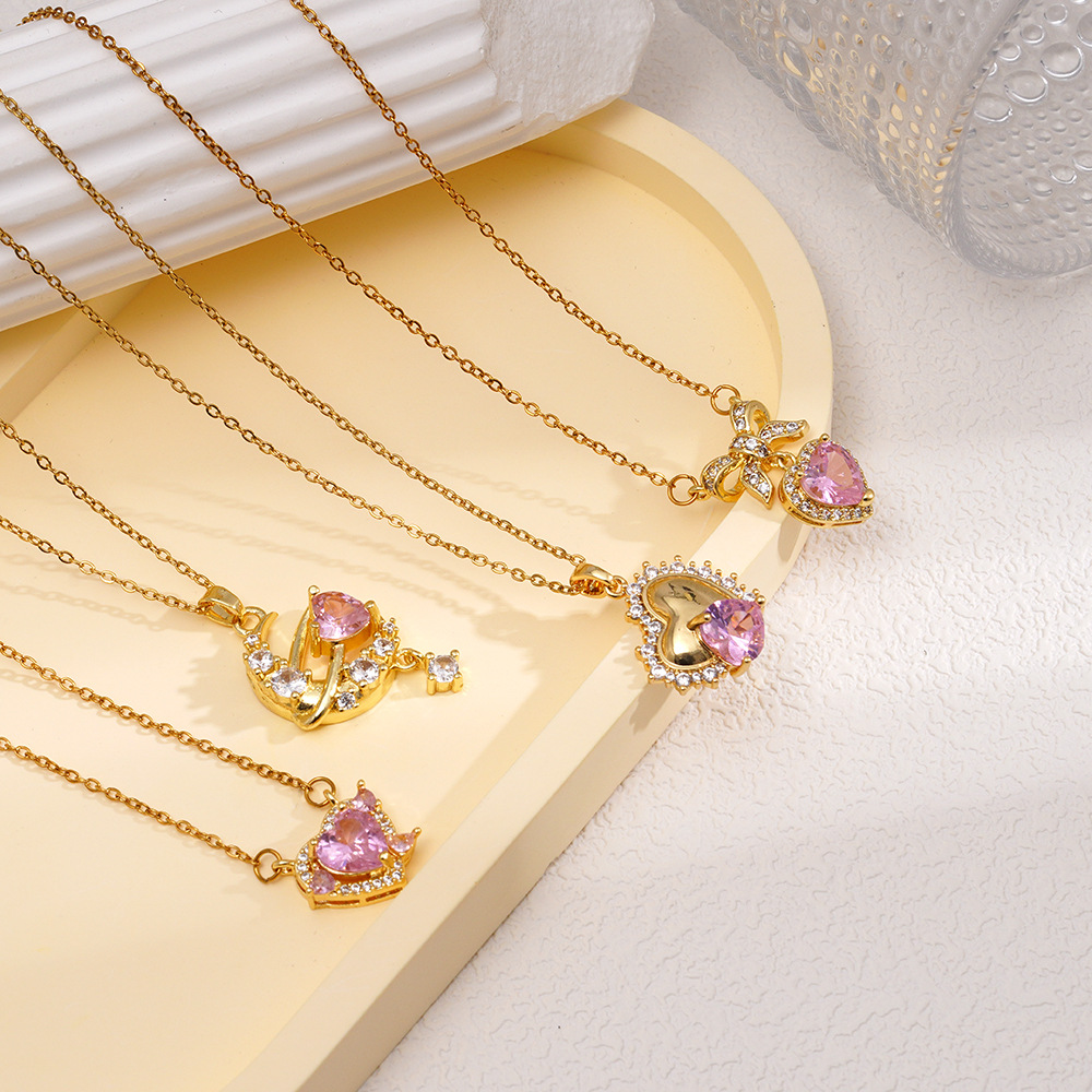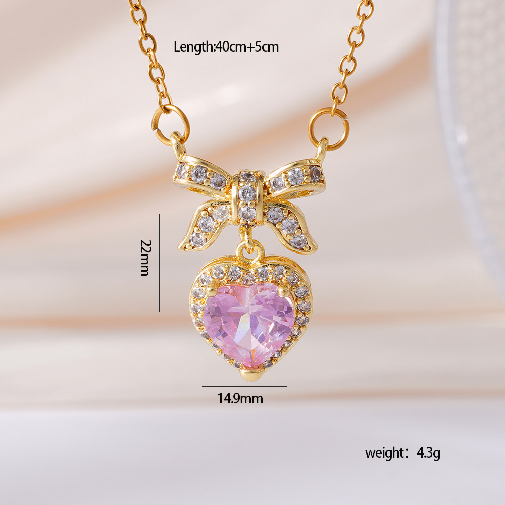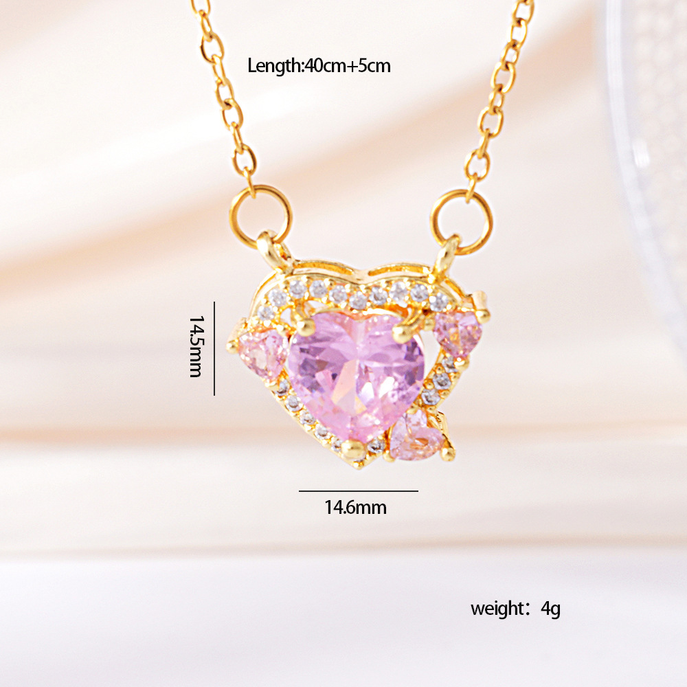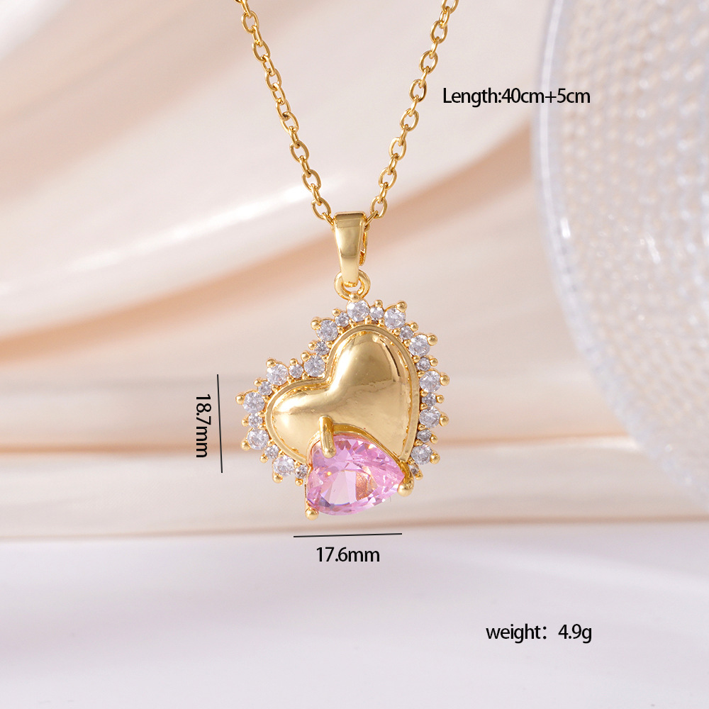 Collier en laiton cubique Zircon Micro Pave, coeur, Placage de couleur d'or