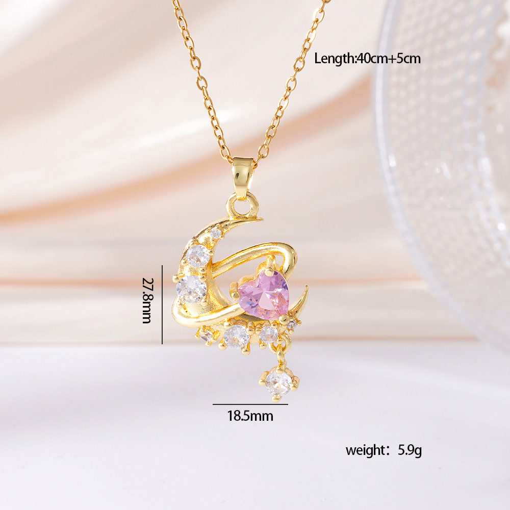 Collier en laiton cubique Zircon Micro Pave, lune, Placage de couleur d'or