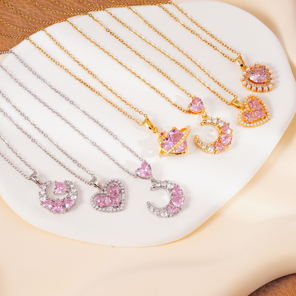 Collier en laiton cubique Zircon Micro Pave, avec 5cm chaînes de rallonge, Dessin animé, Placage, bijoux de mode & modèles différents pour le choix & pavé de micro zircon, plus de couleurs à choisir, protéger l'environnement, sans nickel, plomb et cadmium, Longueur:45 cm, Vendu par PC