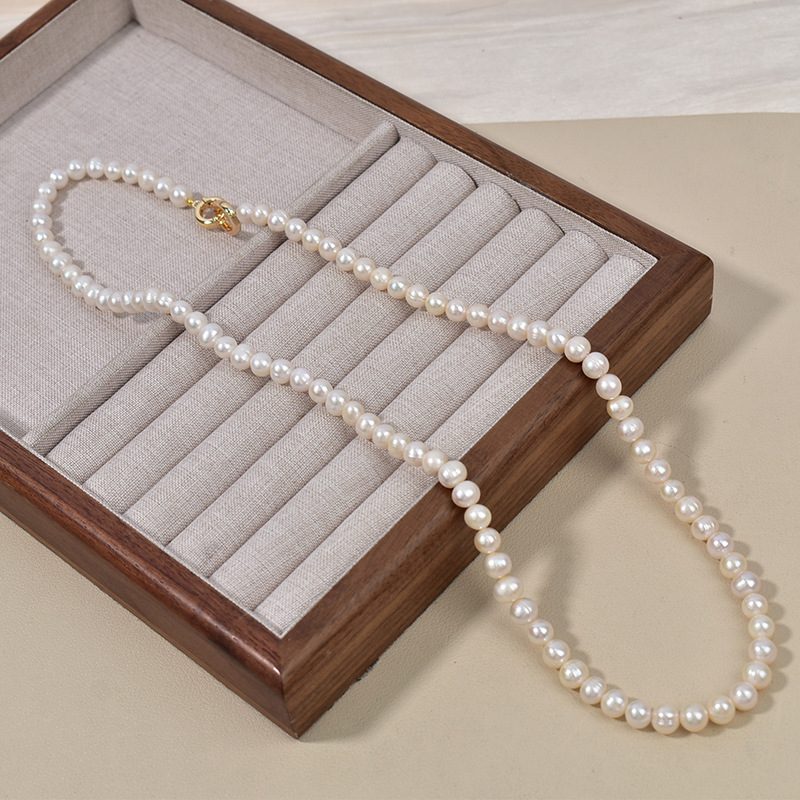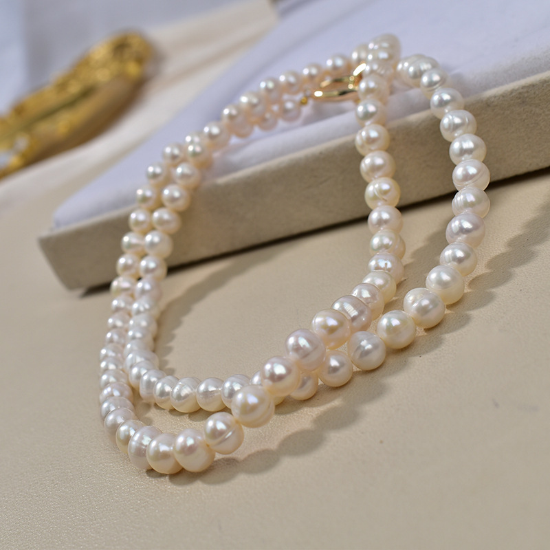 Collier en perles d'eau douce Pull, perle d'eau douce cultivée, avec laiton, Légèrement rond, Placage, bijoux de mode, plus de couleurs à choisir, protéger l'environnement, sans nickel, plomb et cadmium, 6-7mm, Vendu par 60 cm brin