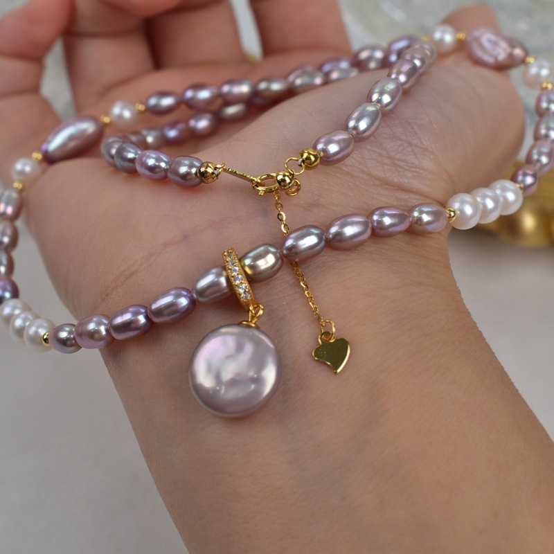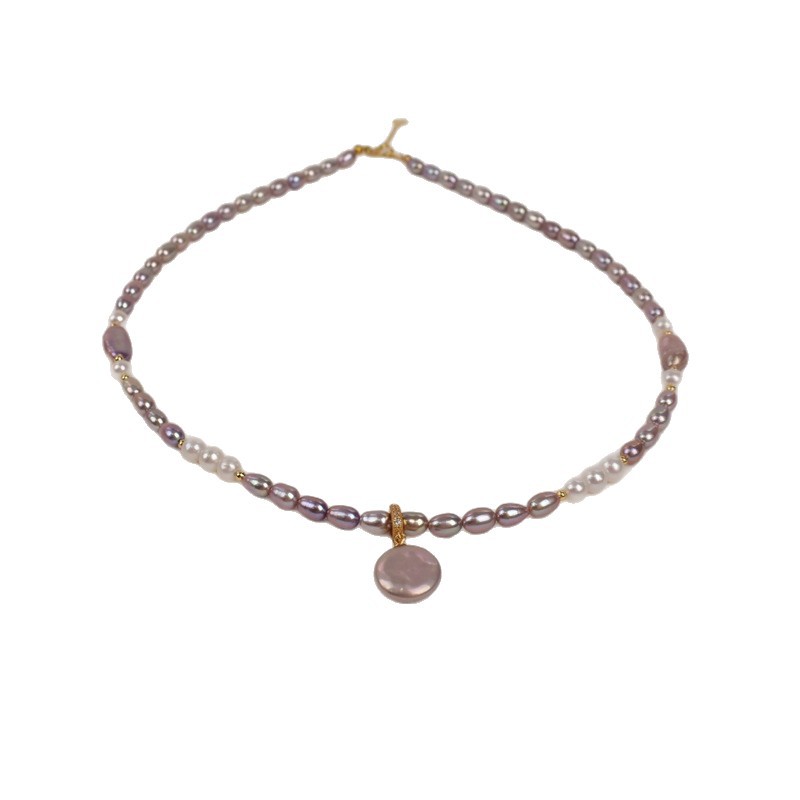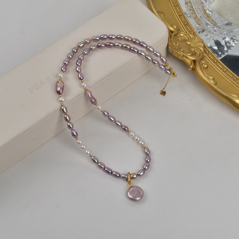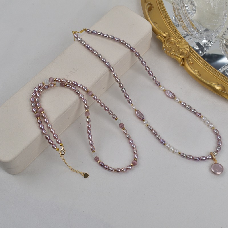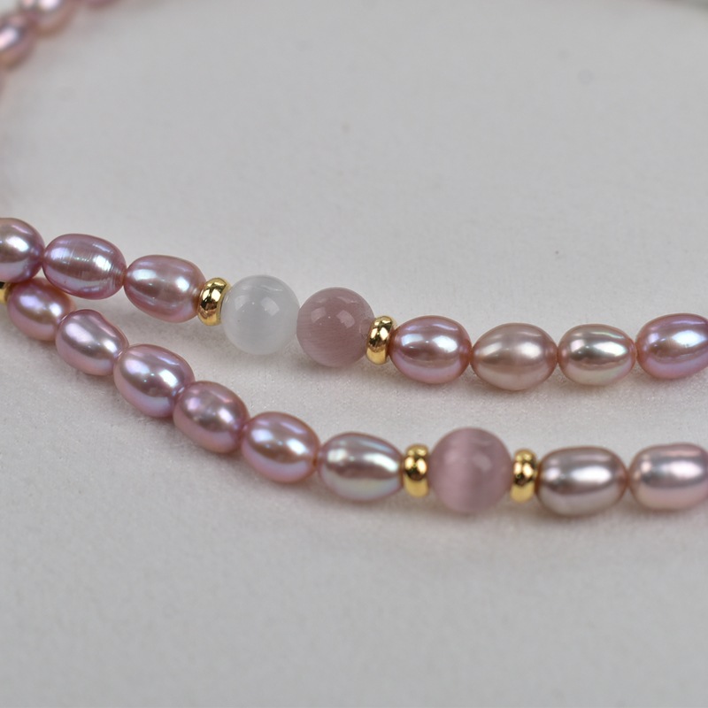 Collier en perles d'eau douce Pull, perle d'eau douce cultivée, avec Oeil de chat, riz, bijoux de mode, violet, 4-6mm, Longueur:46 cm, Vendu par PC