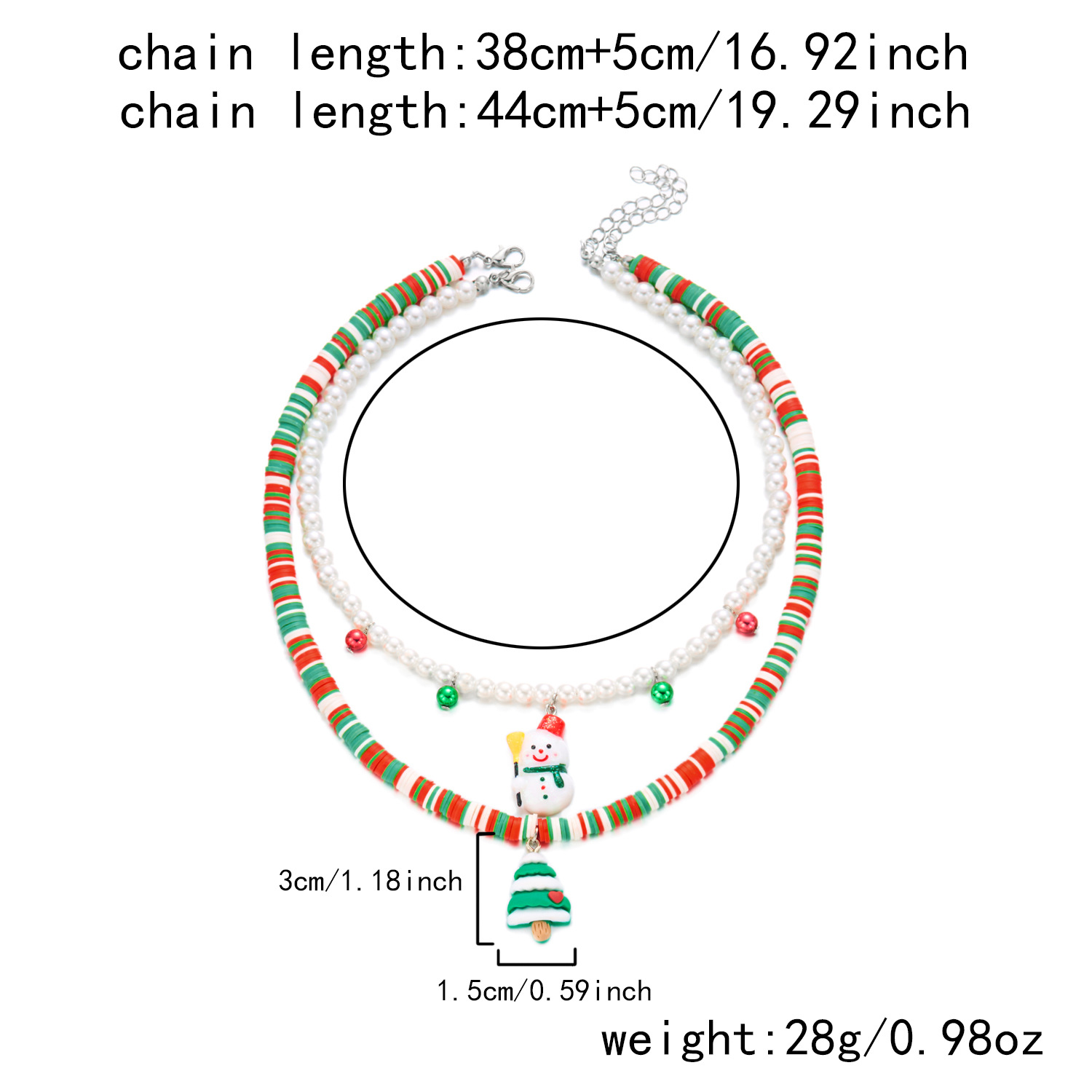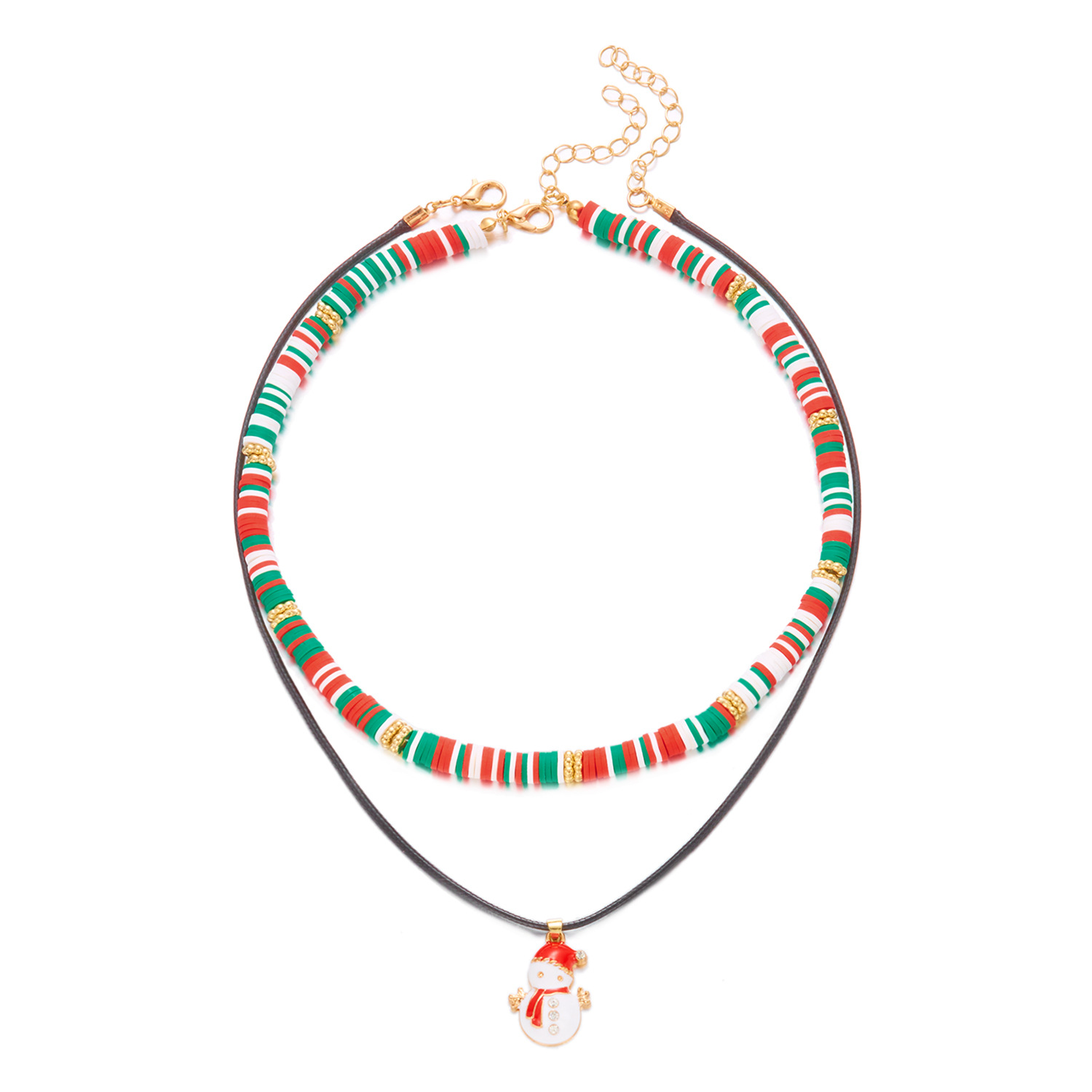 Colliers de Noël, argile de polymère, avec perle de plastique, Placage de couleur d'or, Conception de Noël & émail & avec strass, plus de couleurs à choisir, Vendu par PC