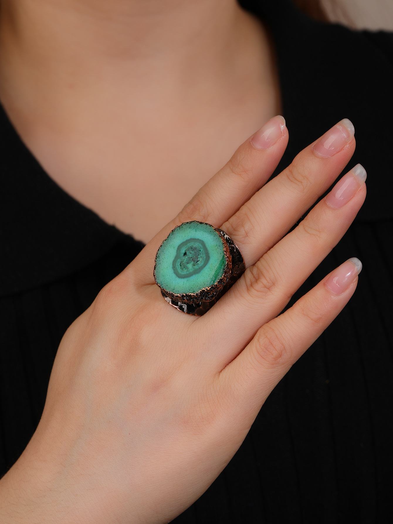 Cristal naturel Cuff Bague, avec alliage de zinc, la couleur plaquée laiton antique, réglable & pour femme, plus de couleurs à choisir, Taille:9, Vendu par PC