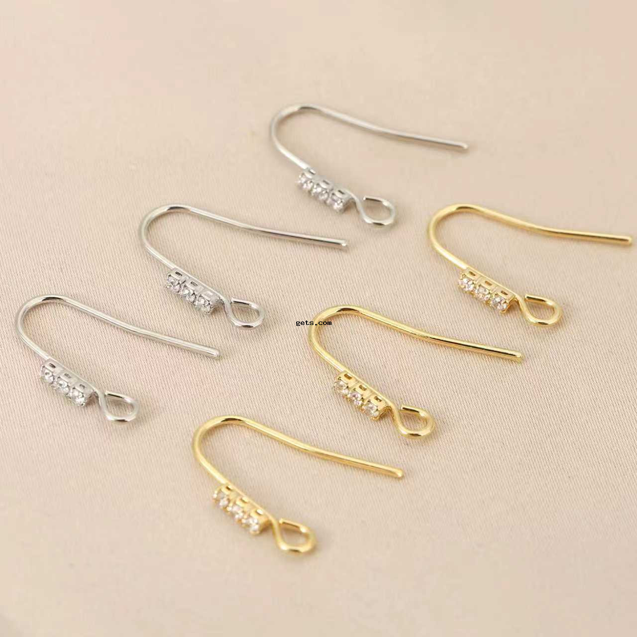 Crochet en laiton boucle d'oreille, Placage de couleur d'or, DIY & pavé de micro zircon & pour femme, protéger l'environnement, sans nickel, plomb et cadmium, 20PC/sac, Vendu par sac