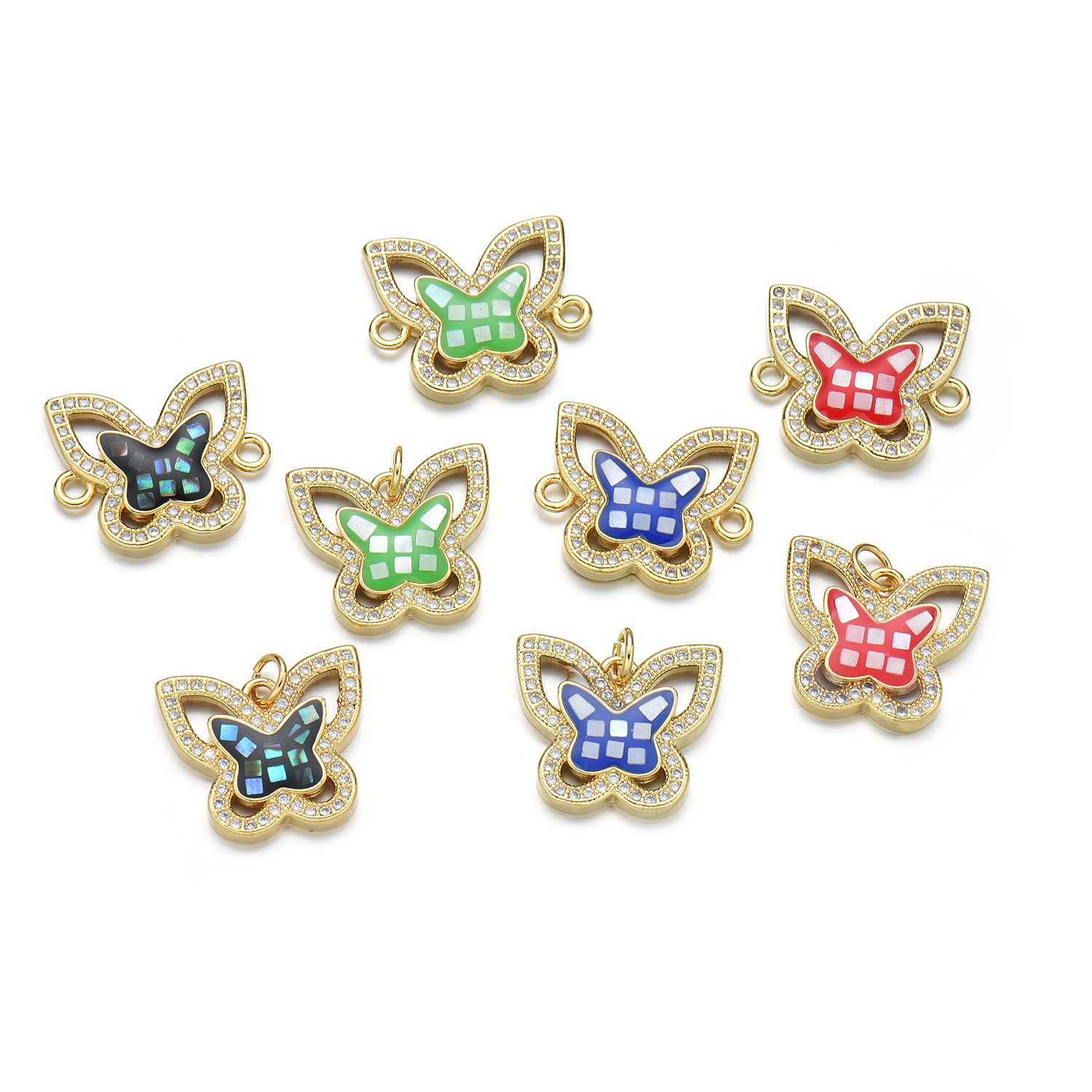 Cubique Pendentif en laiton zircon pavent, avec verre, papillon, Placage de couleur d'or, pavé de micro zircon, plus de couleurs à choisir, 13x15.50mm, Vendu par PC