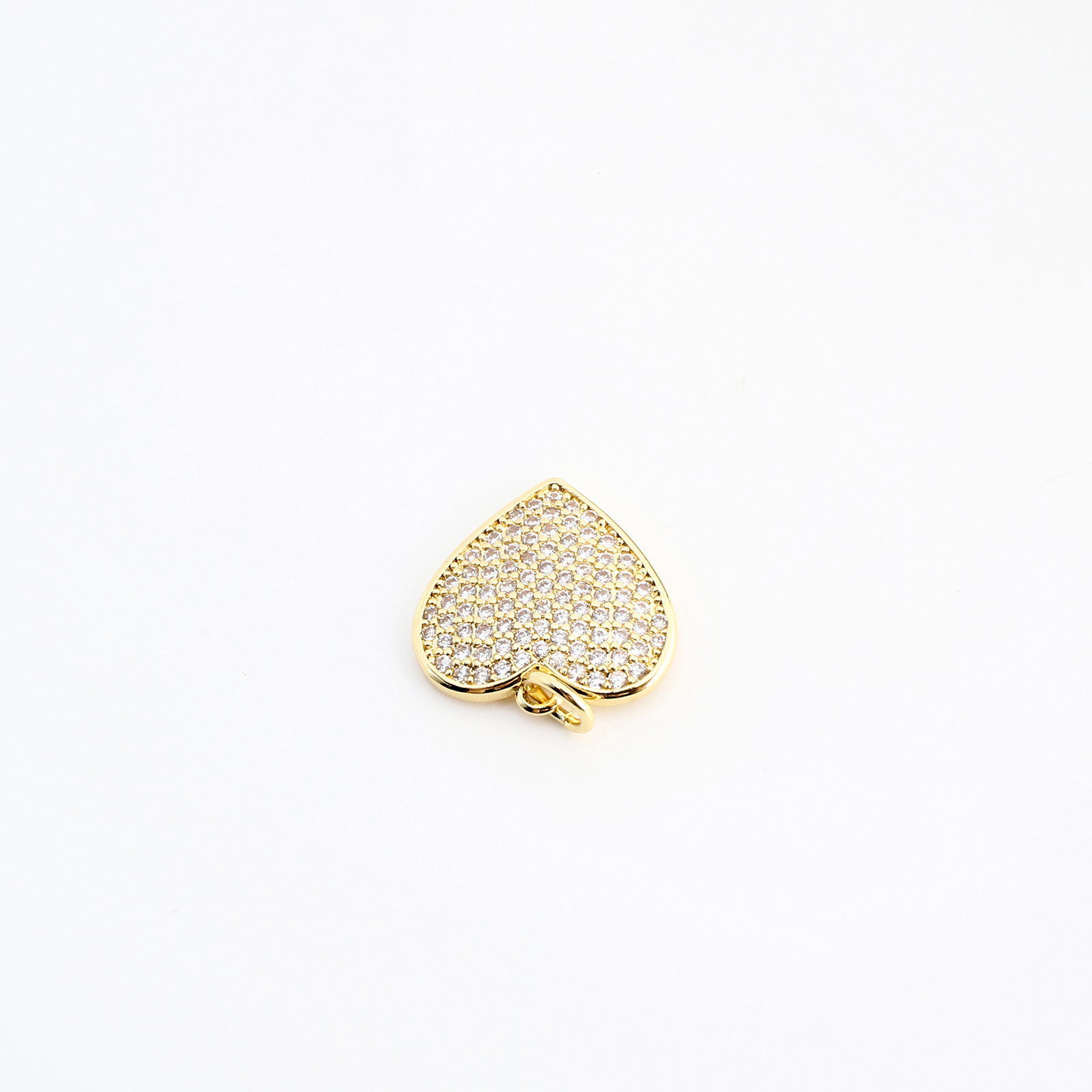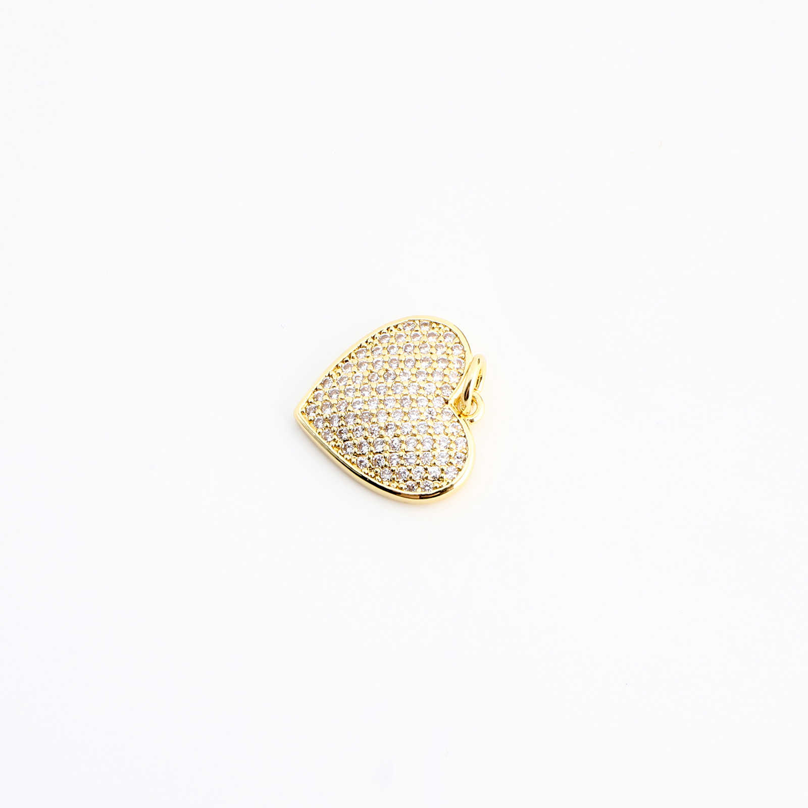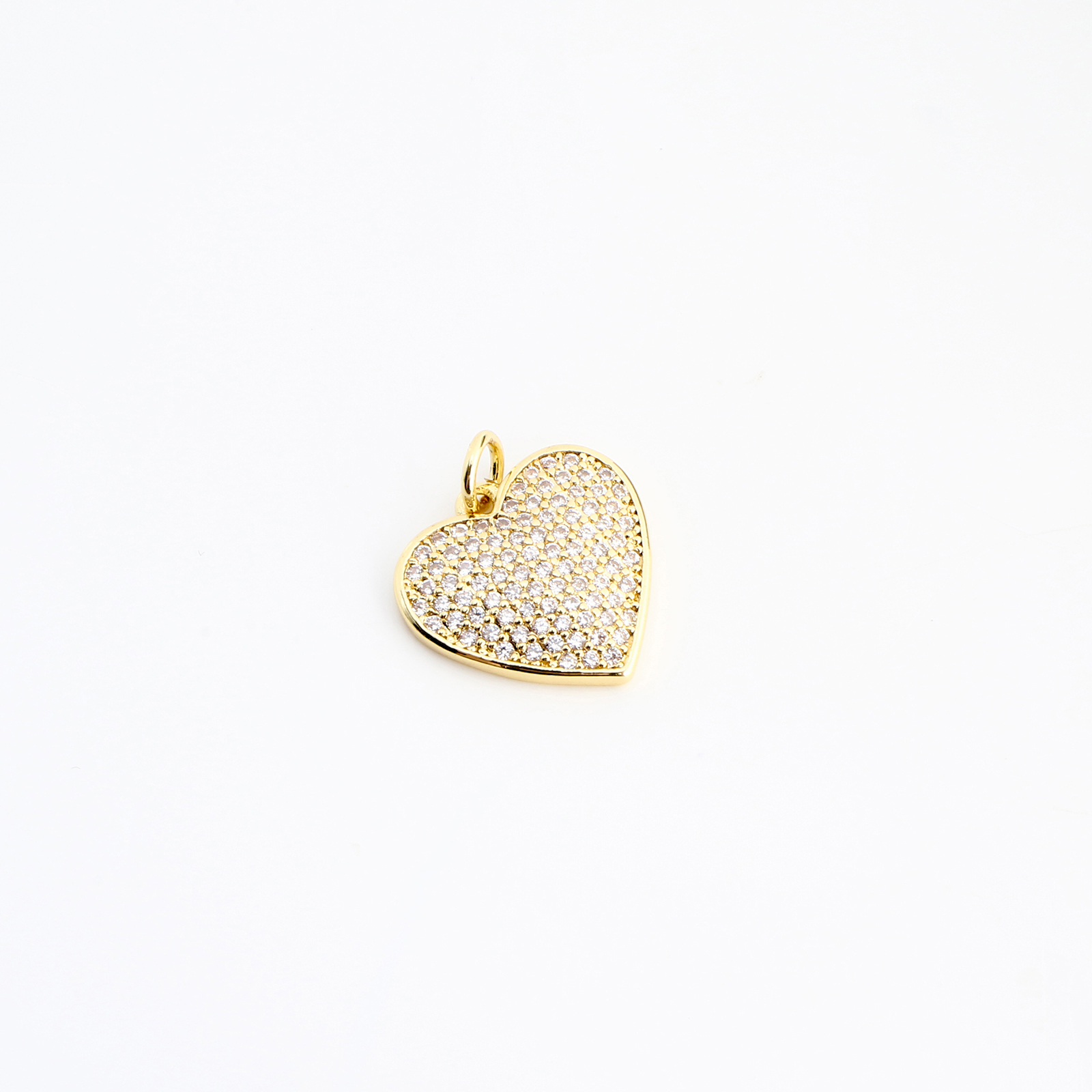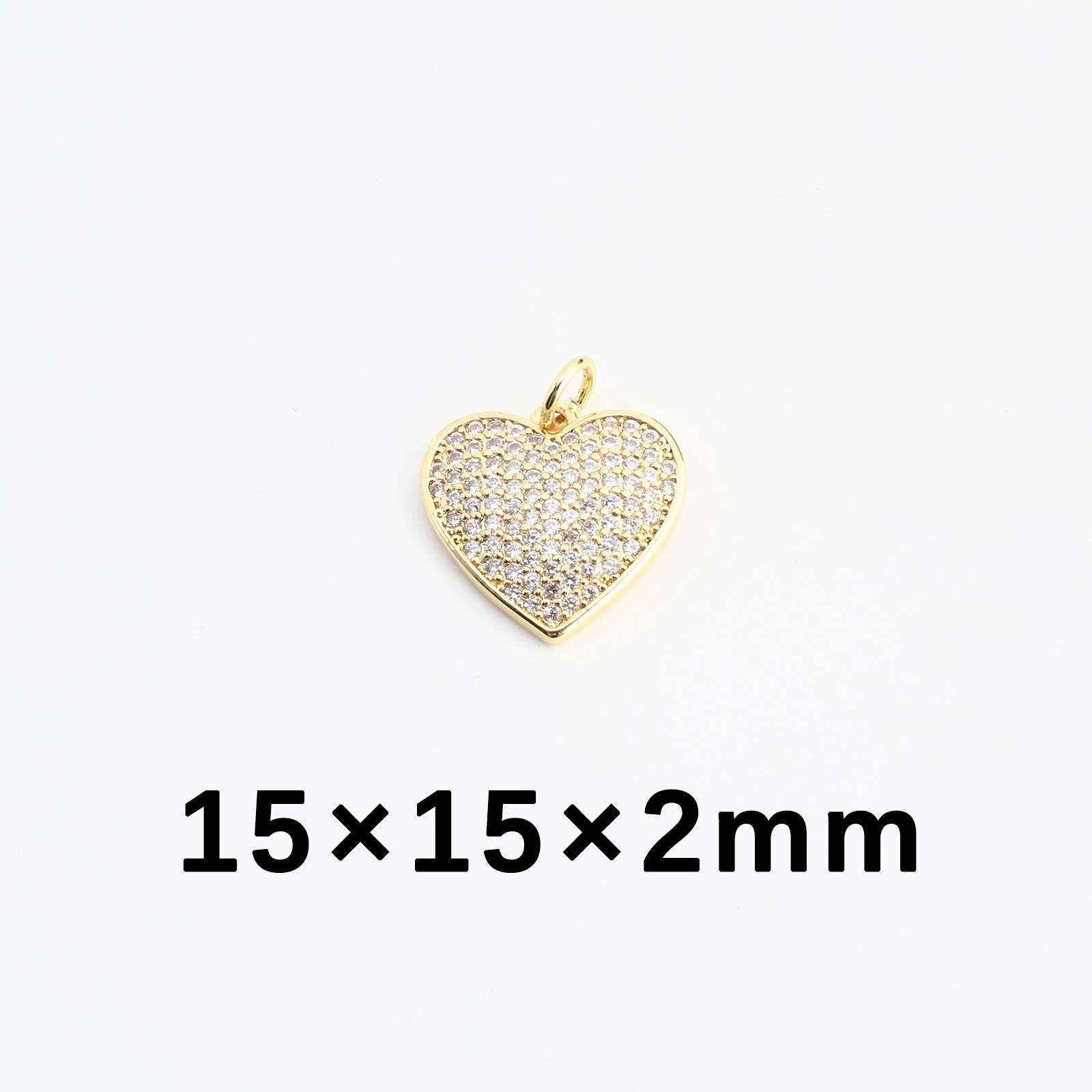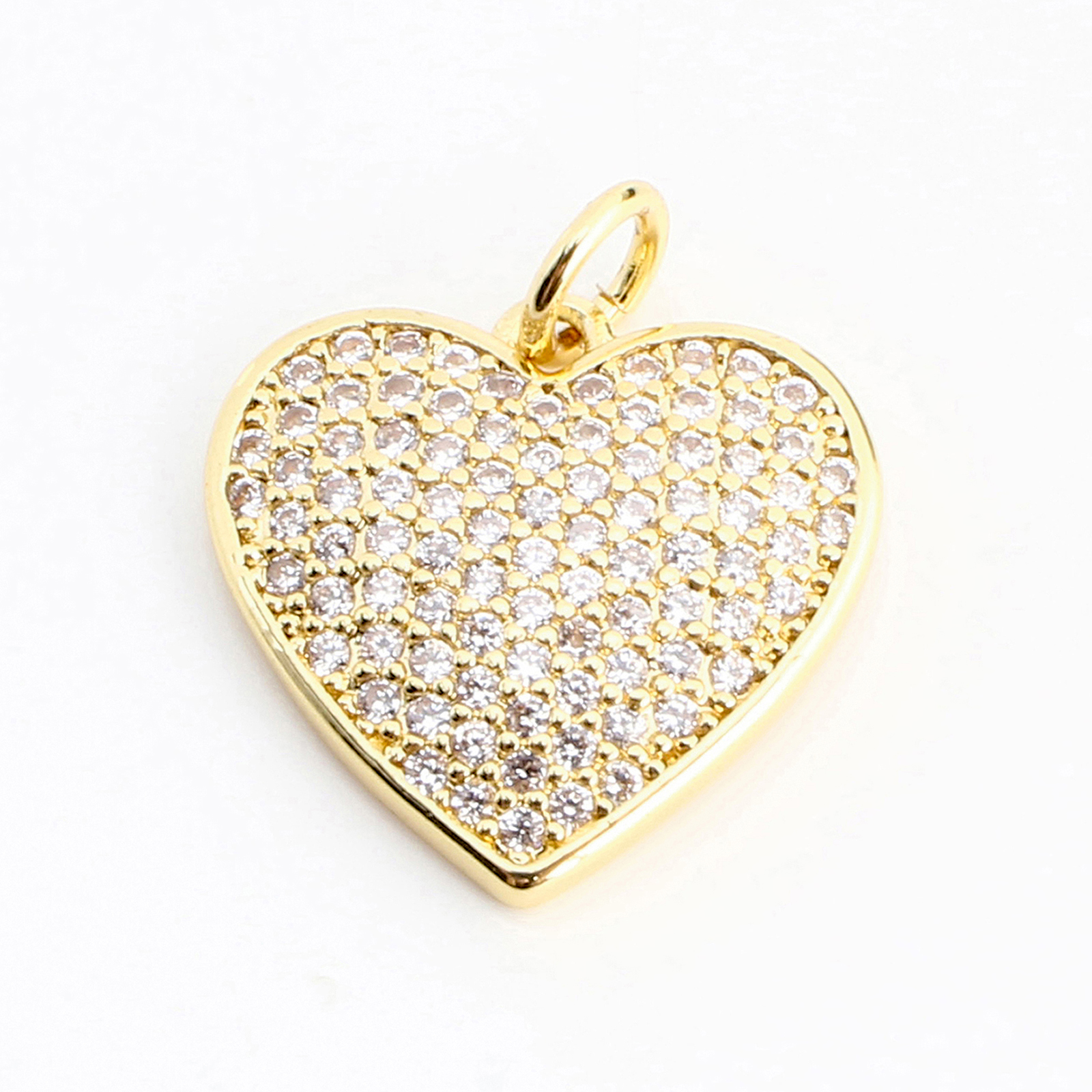 Cubique Pendentif en laiton zircon pavent, coeur, DIY & pavé de micro zircon, doré, 15x15x2mm, Vendu par PC