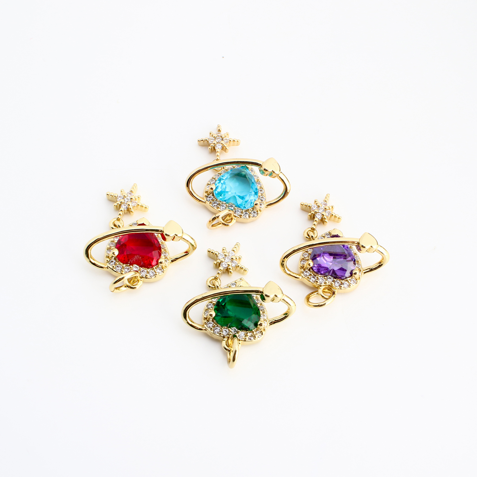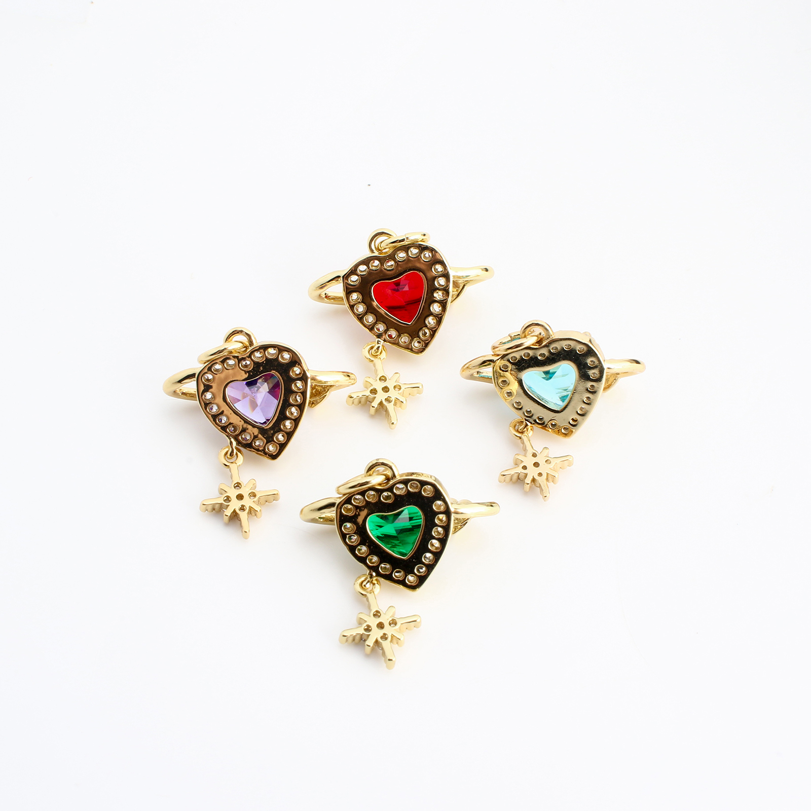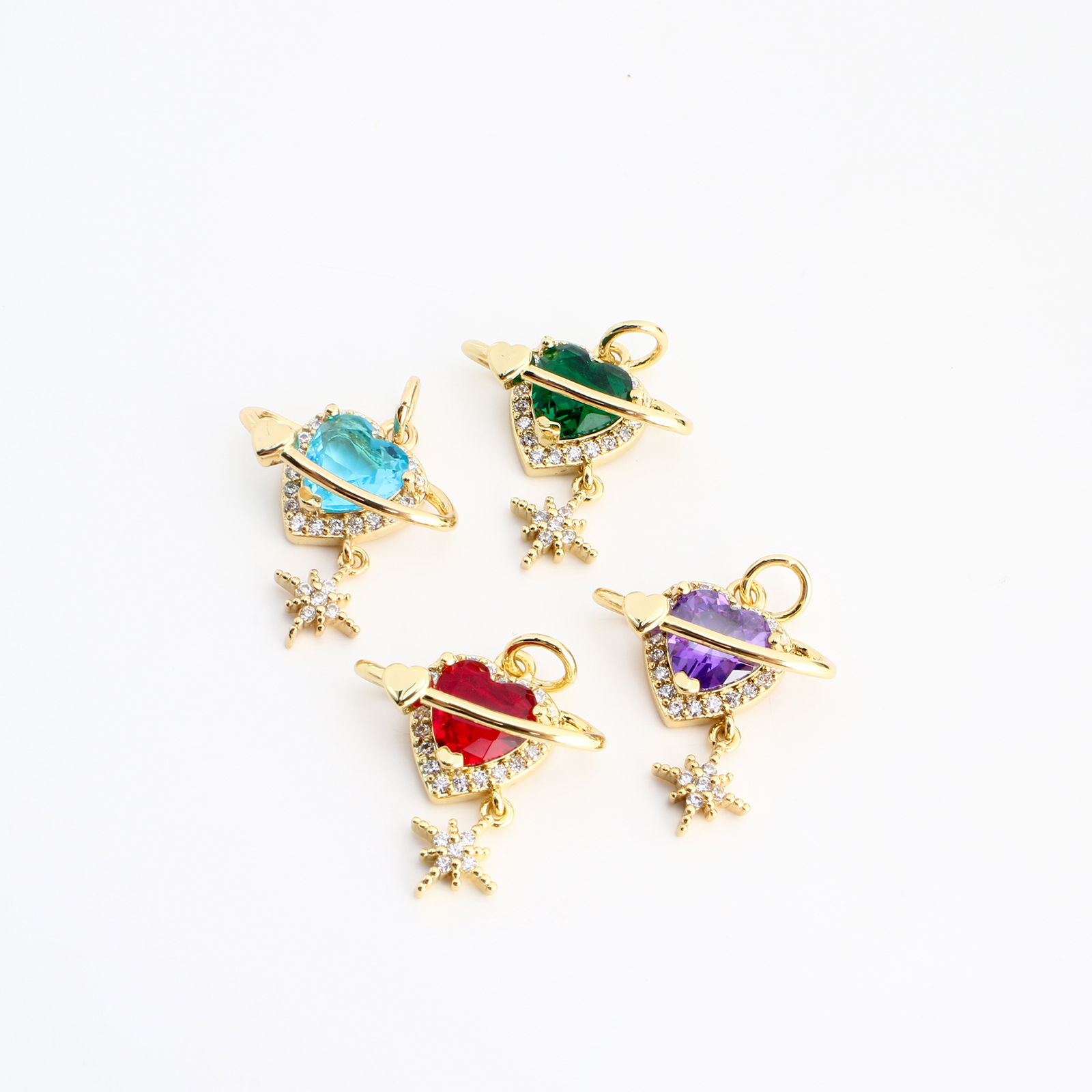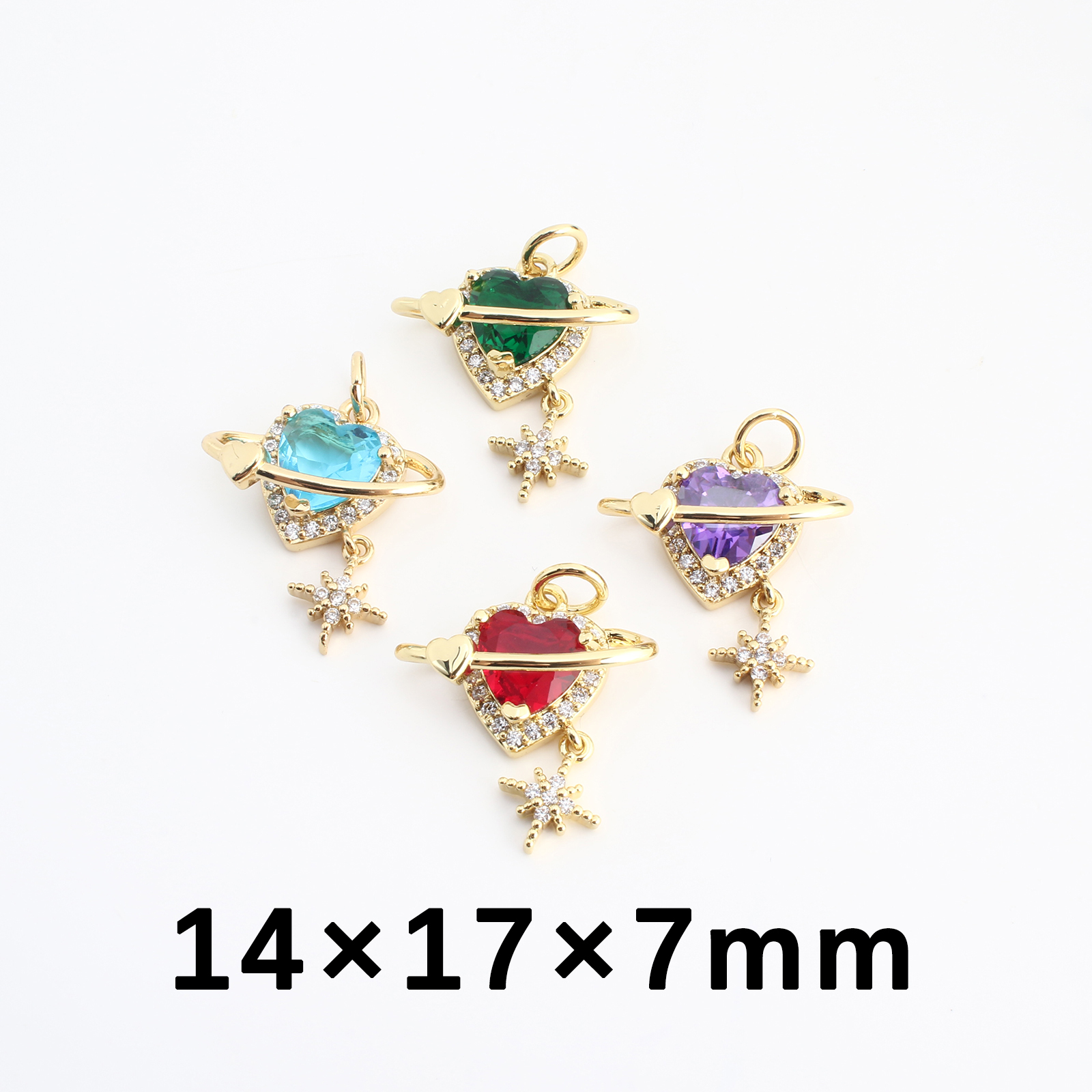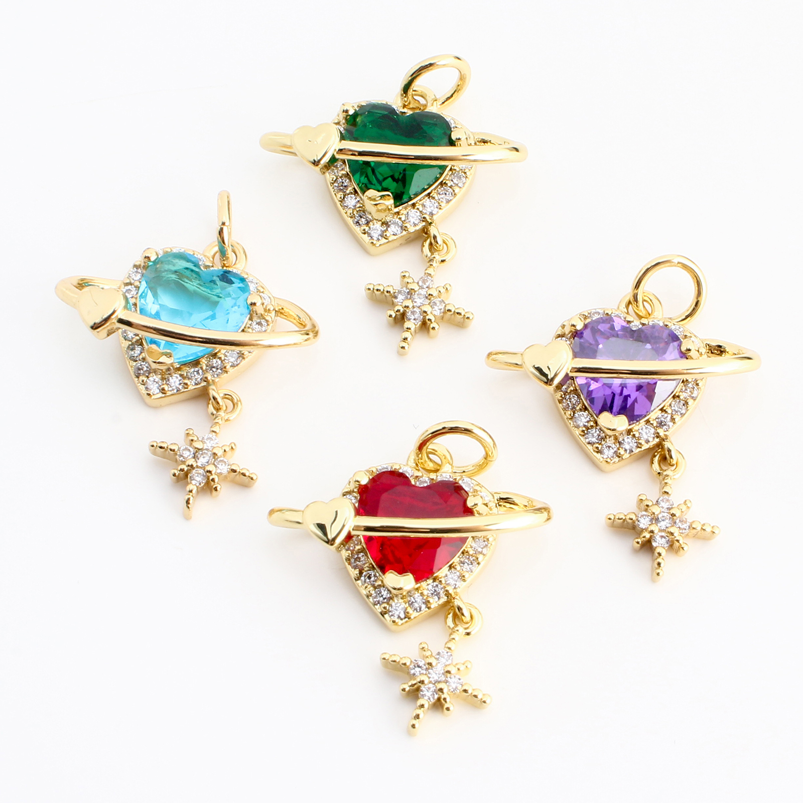 Cubique Pendentif en laiton zircon pavent, coeur, Placage de couleur d'or, DIY & pavé de micro zircon & émail, plus de couleurs à choisir, 30.50x31x2.50mm, Trou:Environ 4mm, 10PC/lot, Vendu par lot