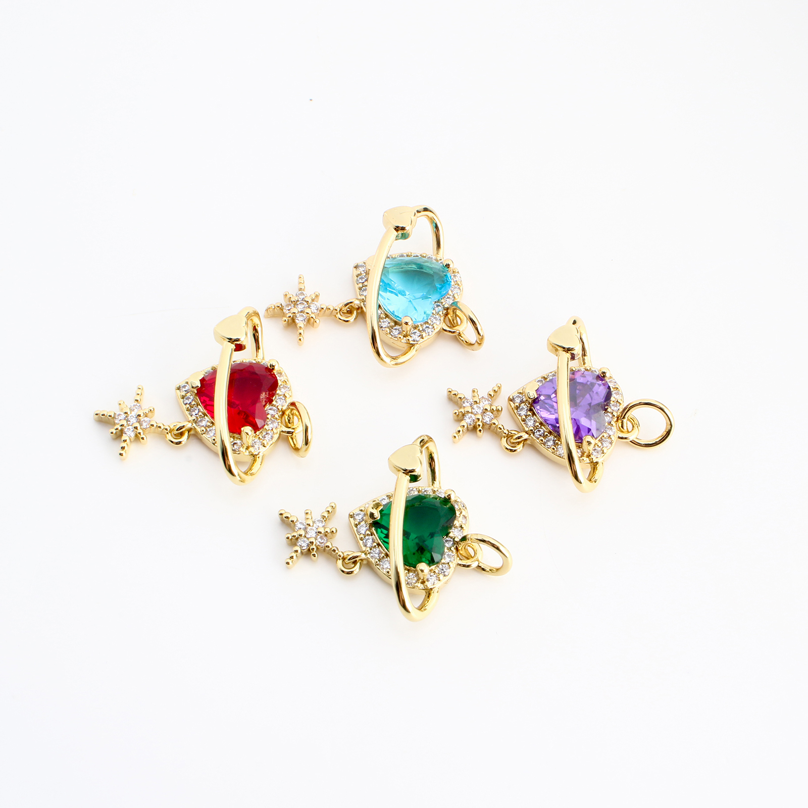 Cubique Pendentif en laiton zircon pavent, coeur, Placage de couleur d'or, DIY & pavé de micro zircon, multicolore, 25x26.50x3mm, Trou:Environ 2mm, 10PC/lot, Vendu par lot