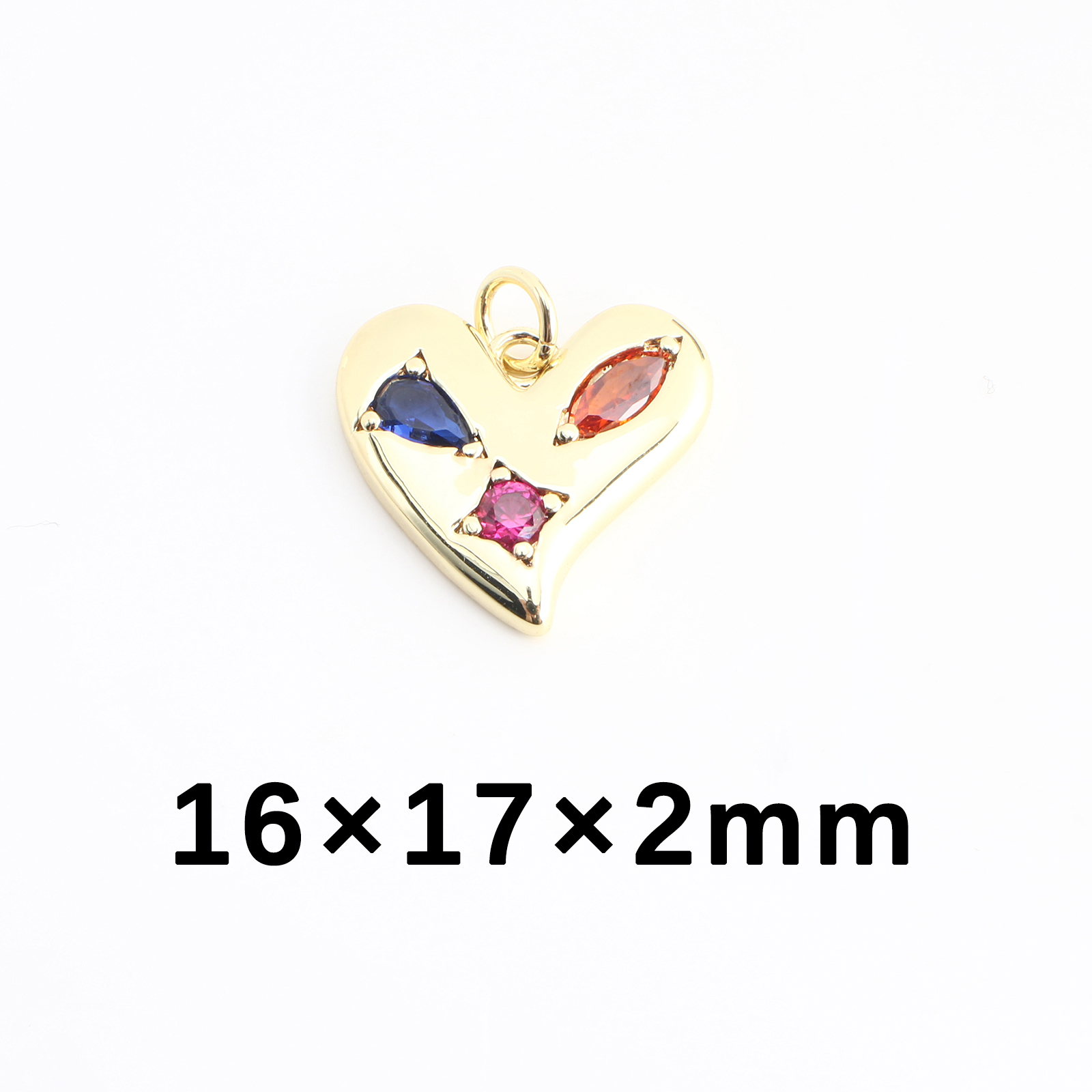 Cubique Pendentif en laiton zircon pavent, coeur, DIY & pavé de micro zircon, doré, 16x17x2mm, Vendu par PC