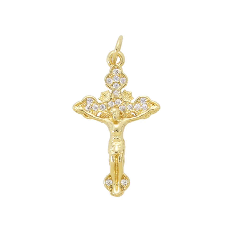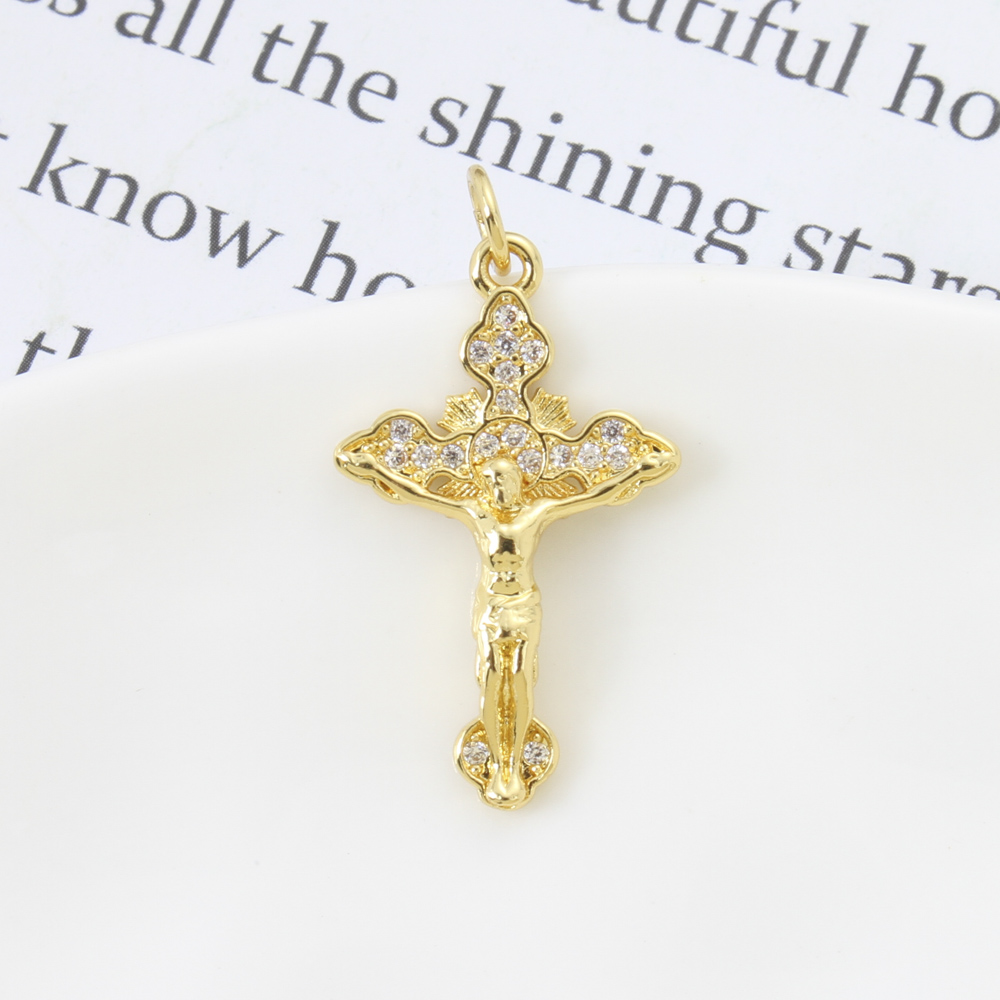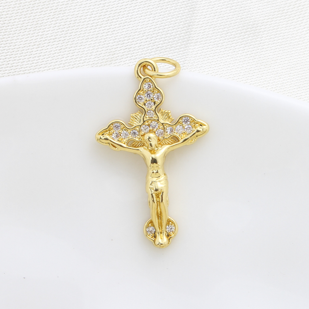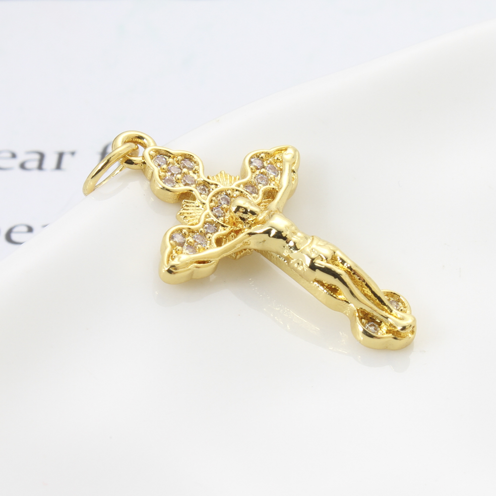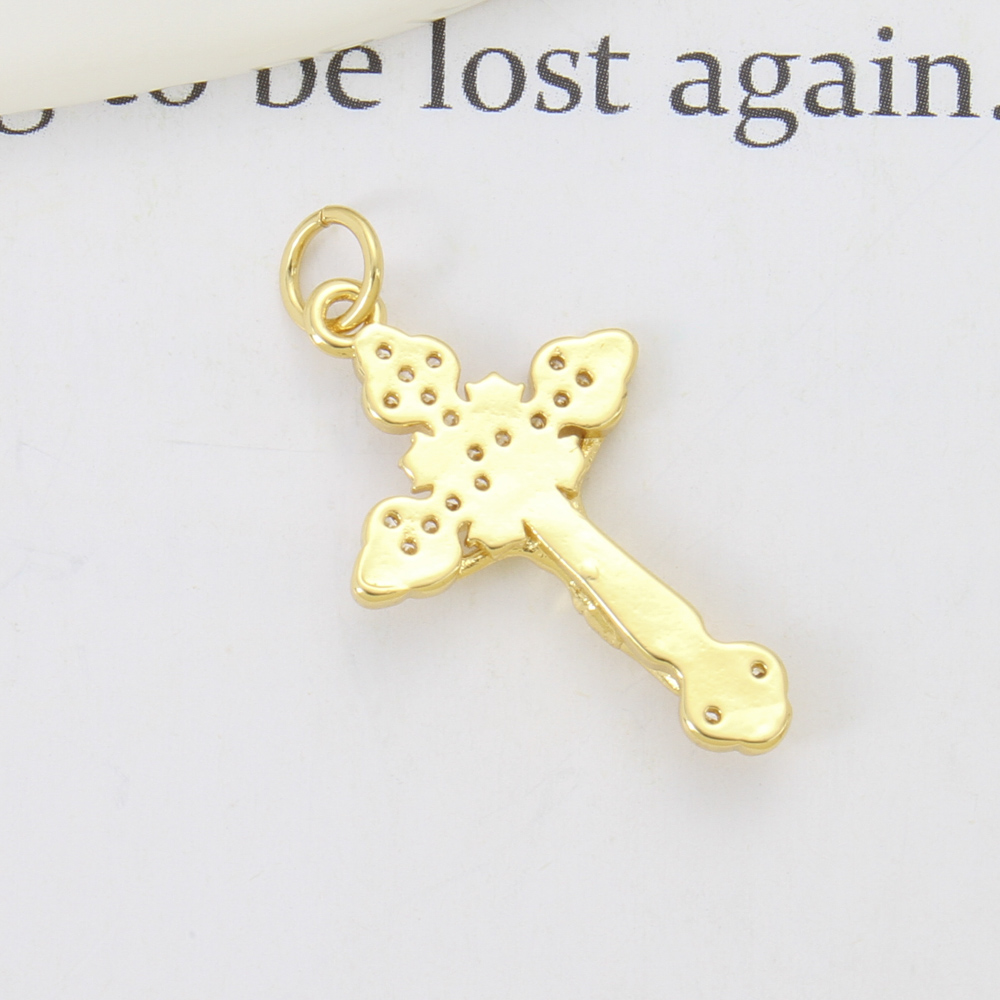 Cubique Pendentif en laiton zircon pavent, croix, Placage, DIY & pavé de micro zircon, doré, 25x15x3mm, Vendu par PC