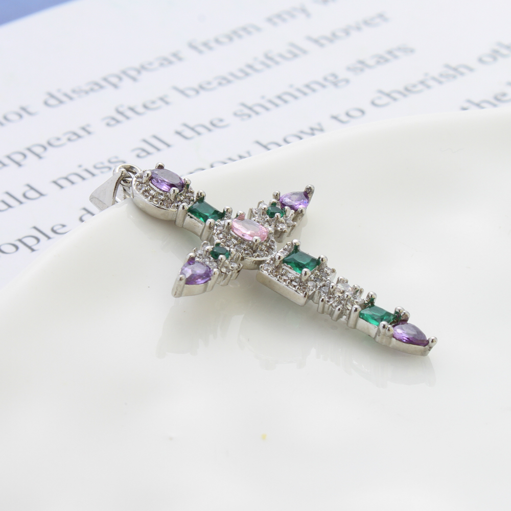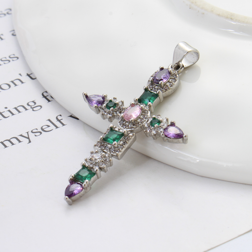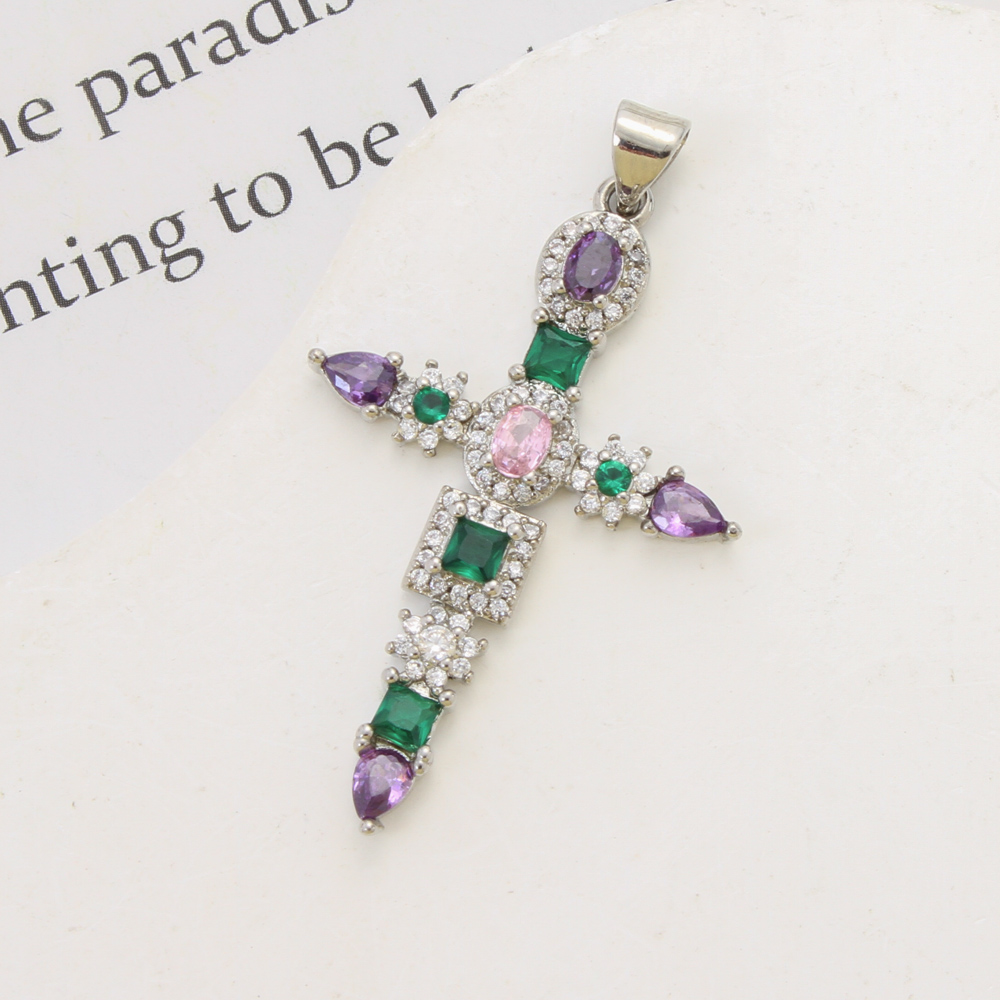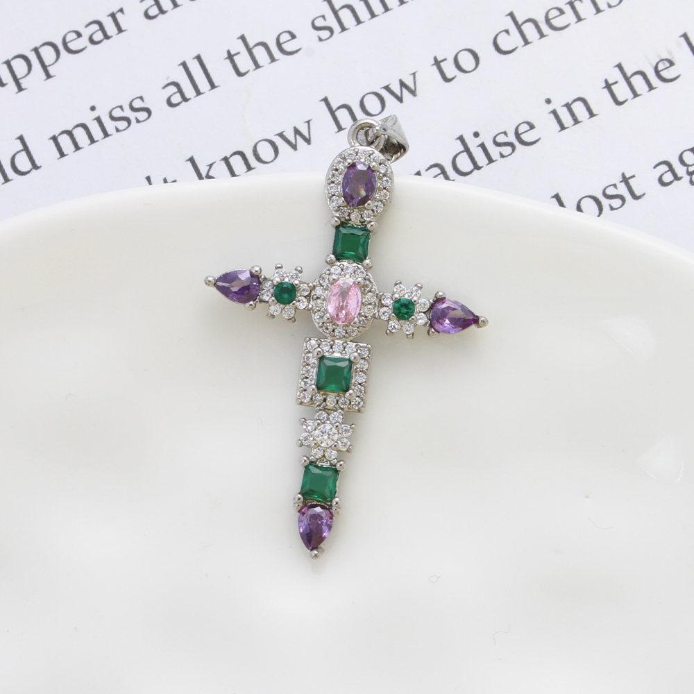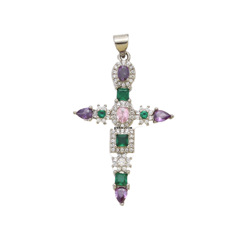 Cubique Pendentif en laiton zircon pavent, croix, Placage, DIY & pavé de micro zircon, plus de couleurs à choisir, protéger l'environnement, sans nickel, plomb et cadmium, 39x25.20x3.60mm, Vendu par PC