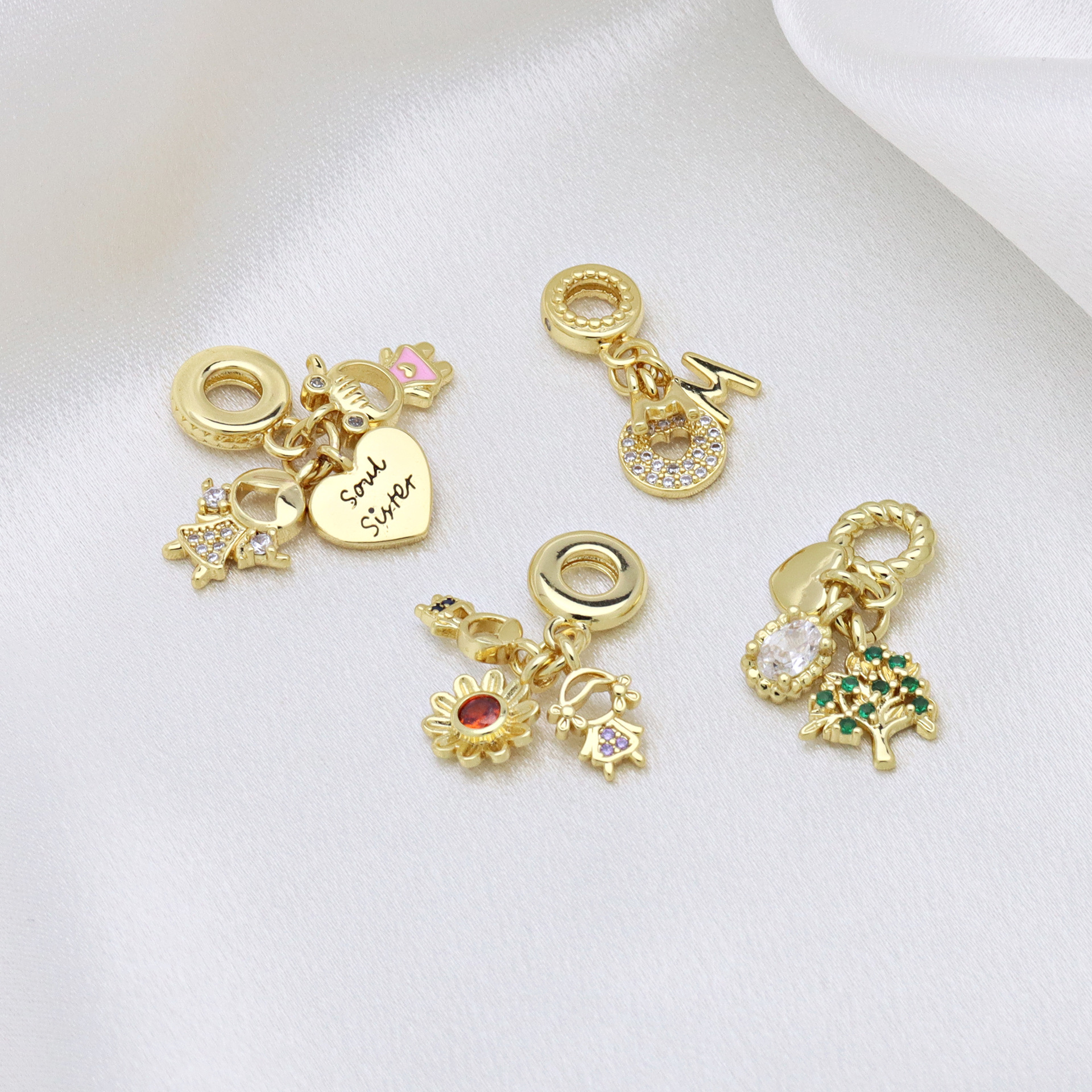 Cubique Pendentif en laiton zircon pavent, Placage de couleur d'or, DIY & styles différents pour le choix & pavé de micro zircon & émail, plus de couleurs à choisir, Vendu par PC