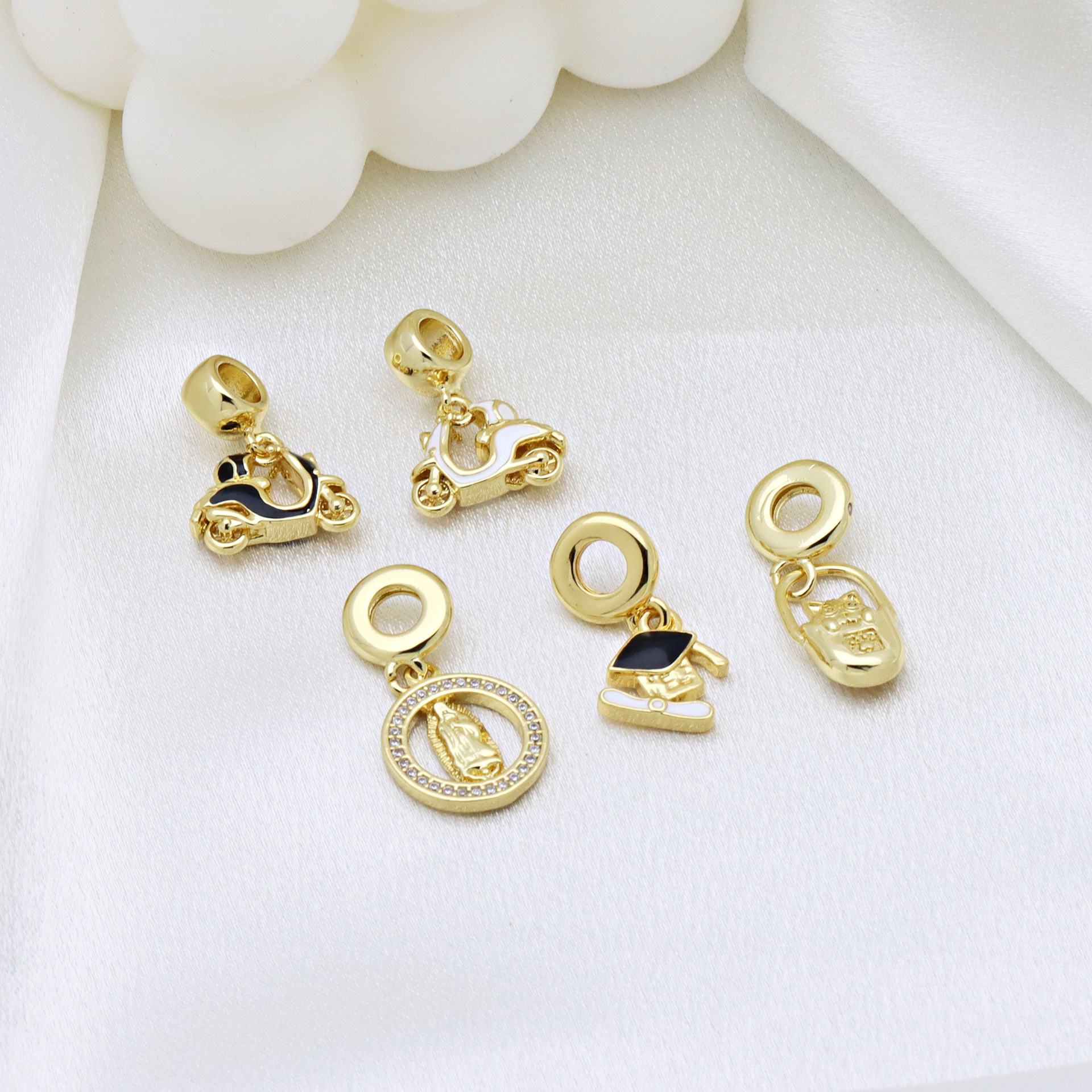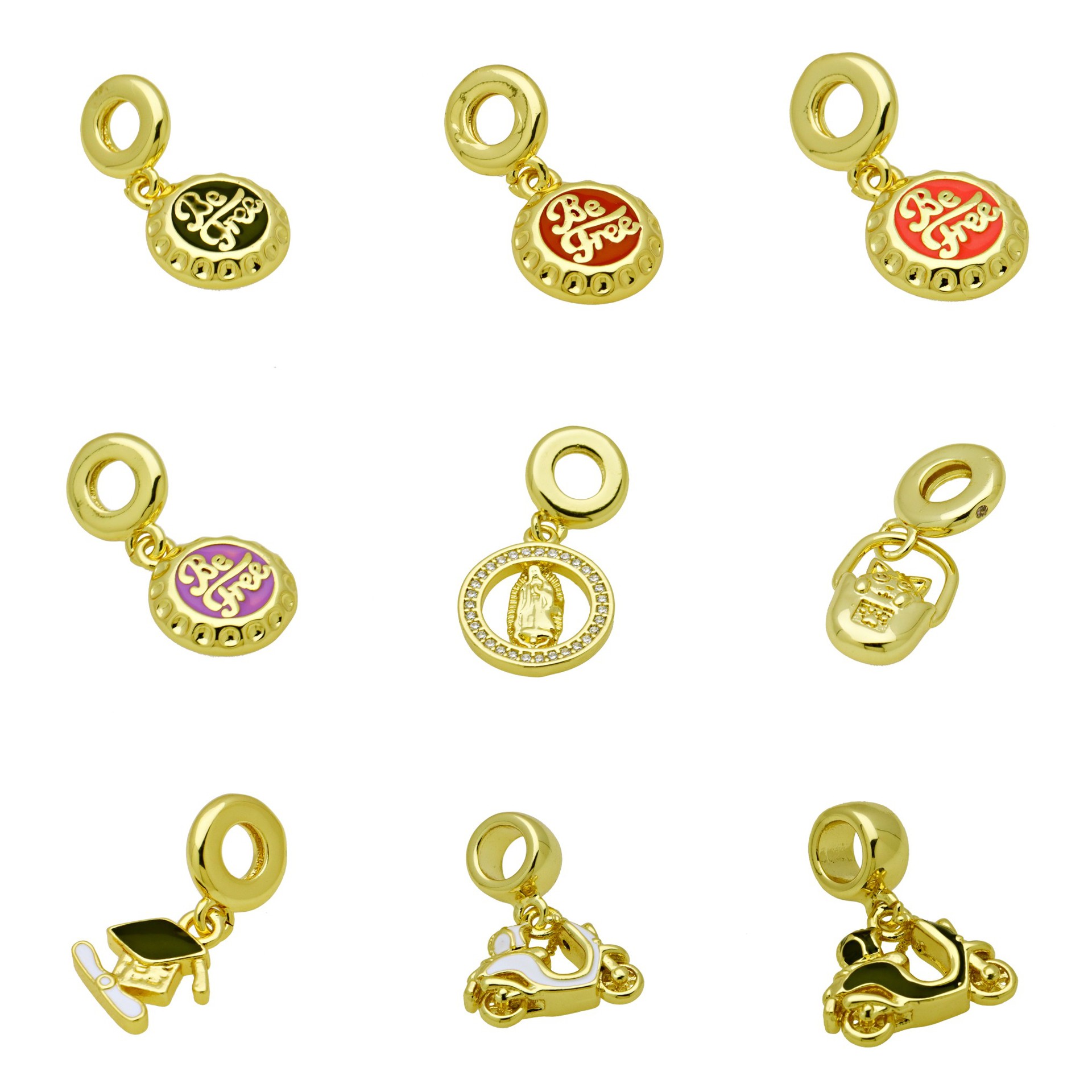 Cubique Pendentif en laiton zircon pavent, Placage de couleur d'or, DIY & styles différents pour le choix & pavé de micro zircon & émail, plus de couleurs à choisir, Vendu par PC
