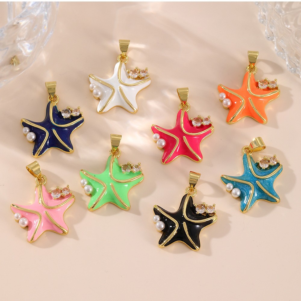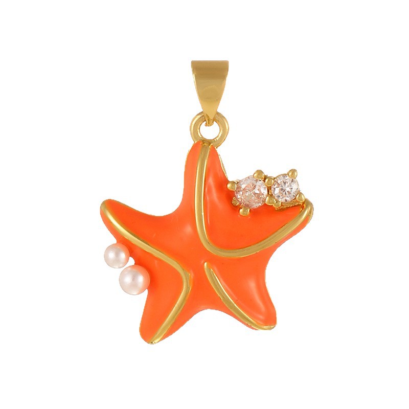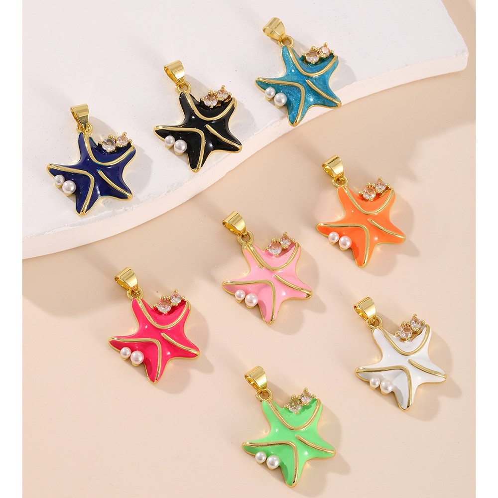 Cubique Pendentif en laiton zircon pavent, avec perle de plastique, étoile de mer, Placage de couleur d'or, DIY & pavé de micro zircon & émail, plus de couleurs à choisir, 20x22mm, Vendu par PC