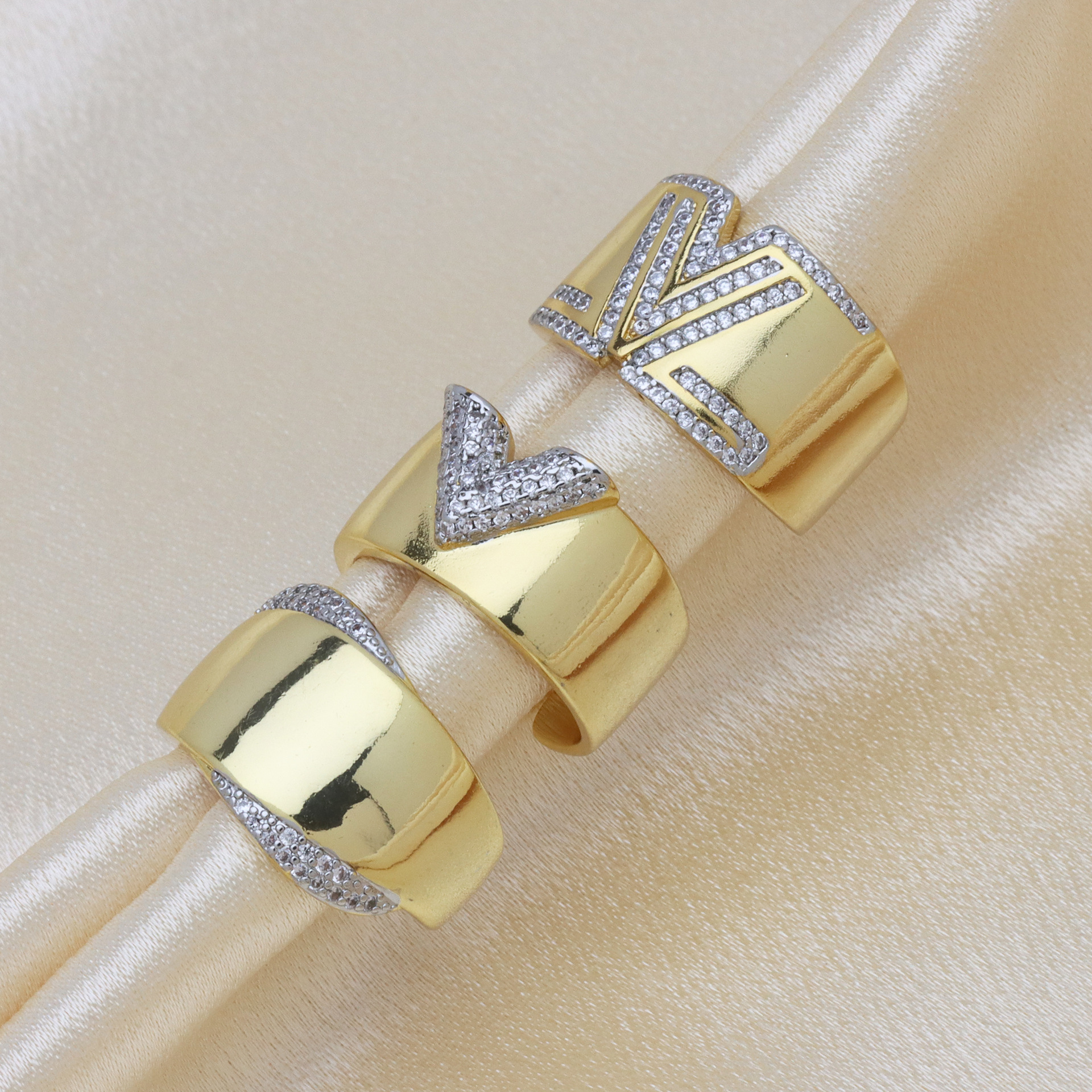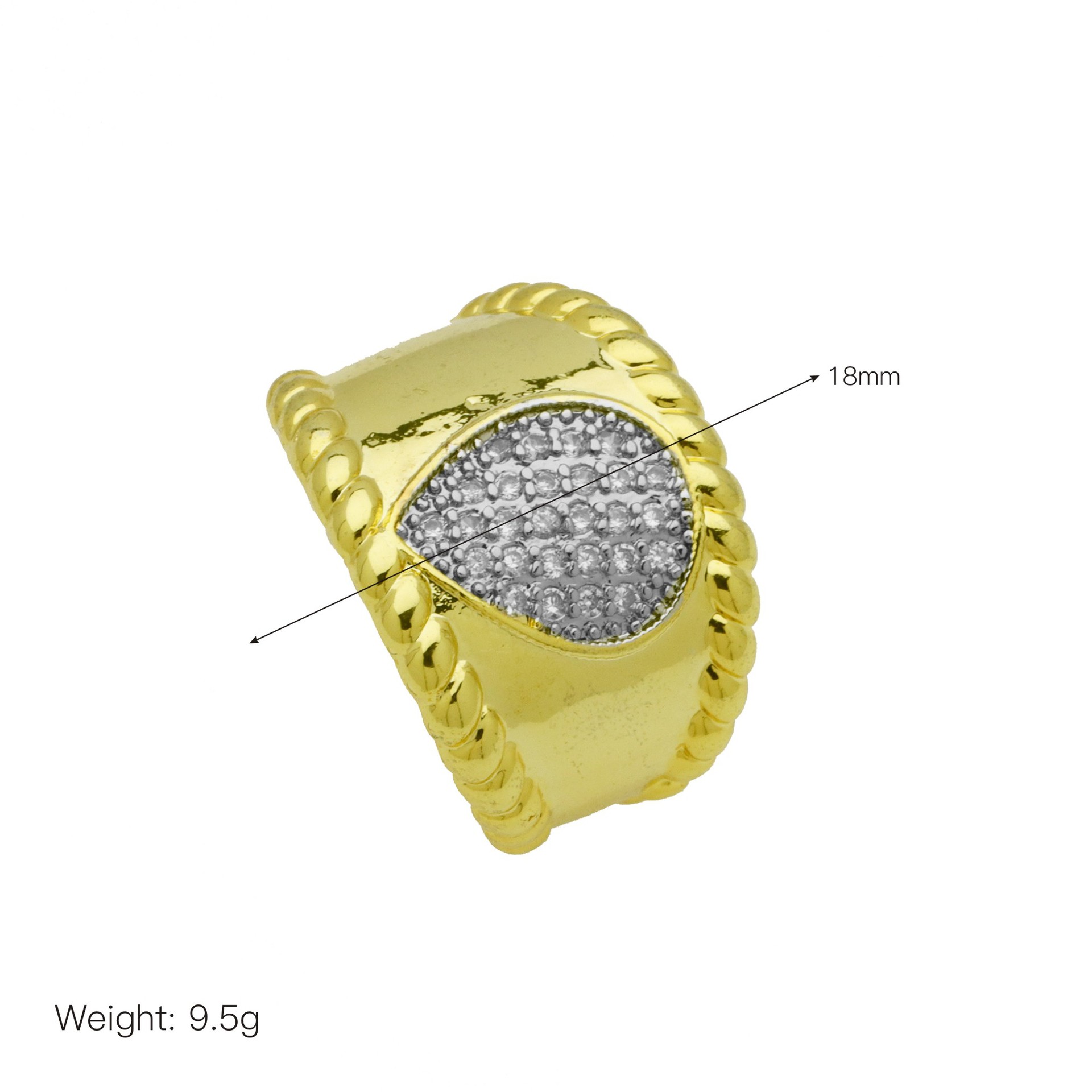 - Cubique anneau en laiton Circonia Micro Pave, plaqué de couleur d'or KC, pavé de micro zircon & pour femme
