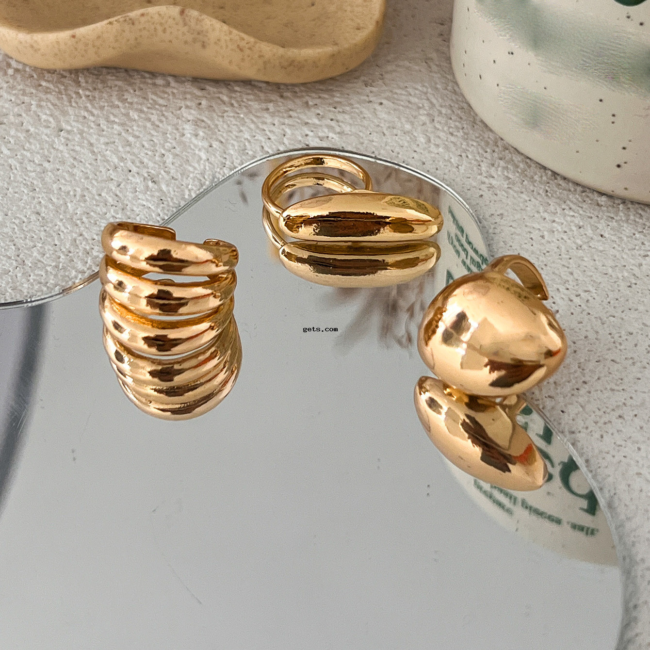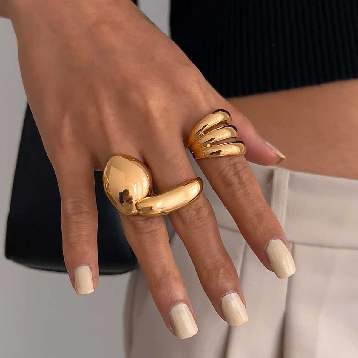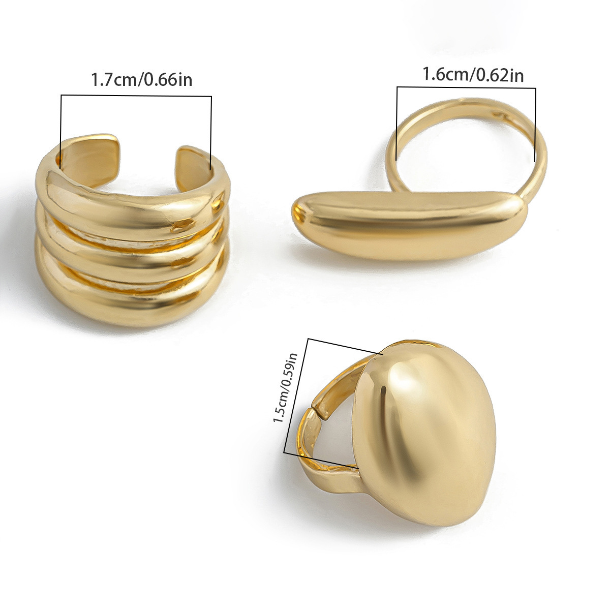 Ensemble d’anneau en alliage de zinc, Placage, trois pièces & bijoux de mode & pour femme, doré, Vendu par fixé