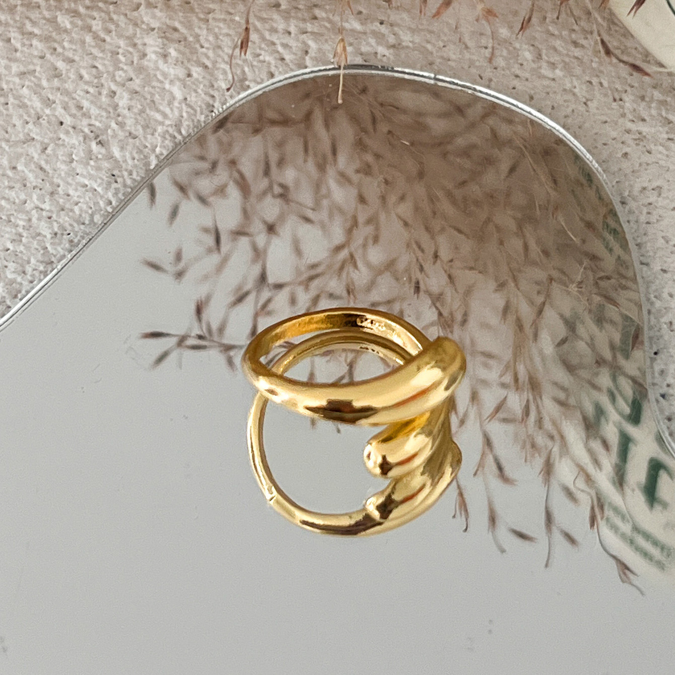alliage de zinc bague, trois pièces & bijoux de mode & pour femme, doré