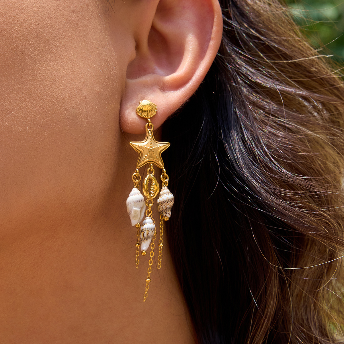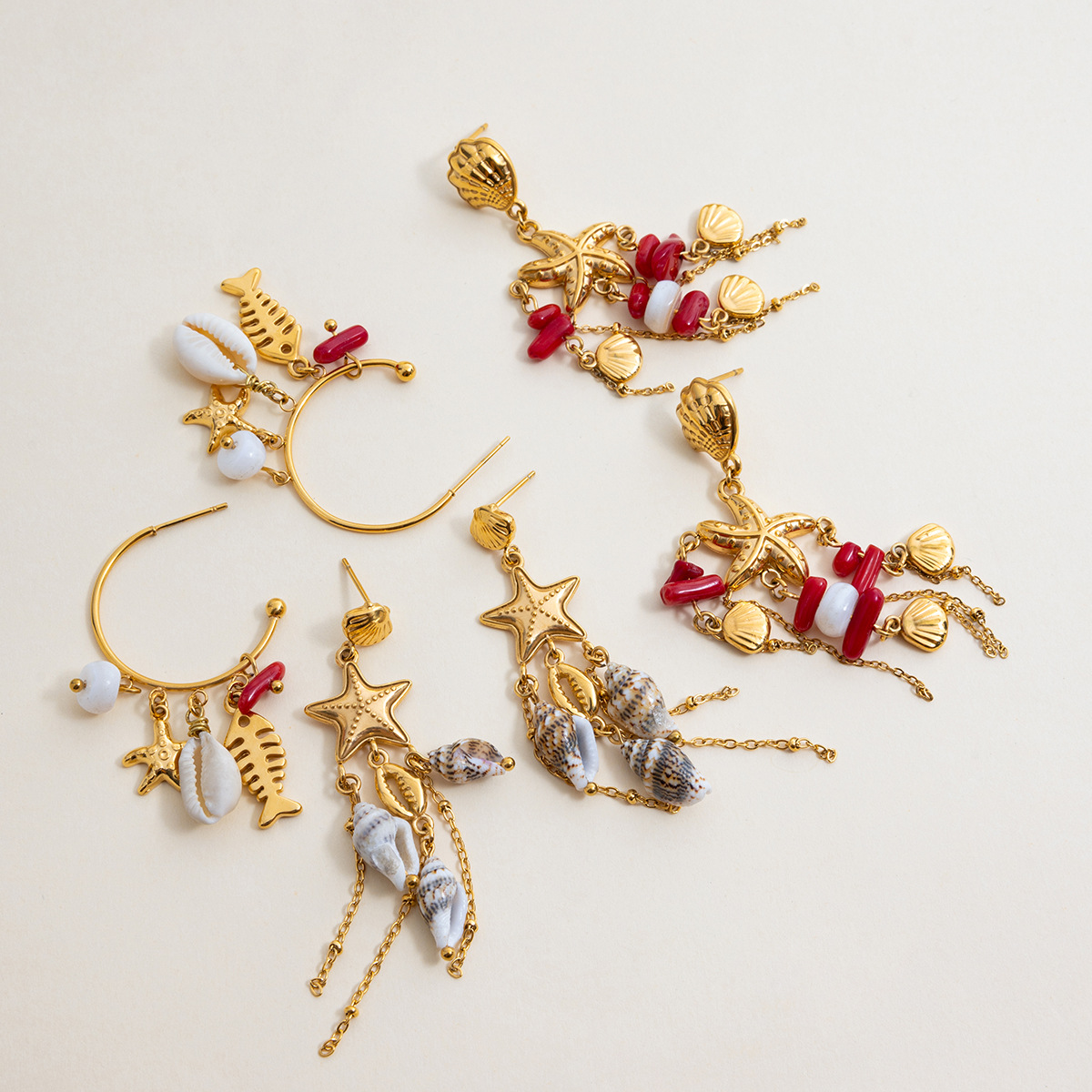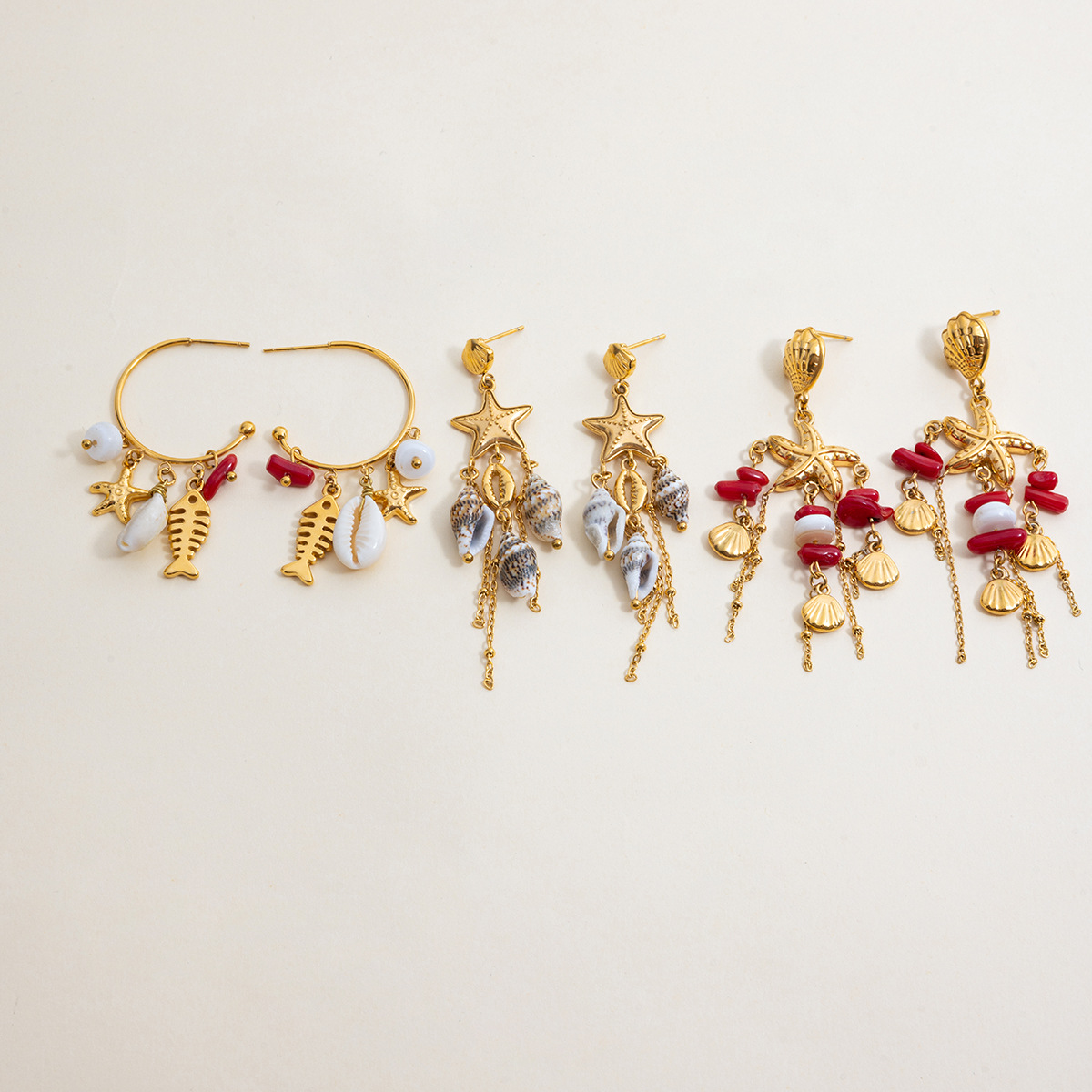 Fashion Fringe Boucles d'oreilles, Acier inoxydable 304, avec coquille de trompette, Placage, bijoux de mode & styles différents pour le choix & pour femme, doré, Vendu par paire