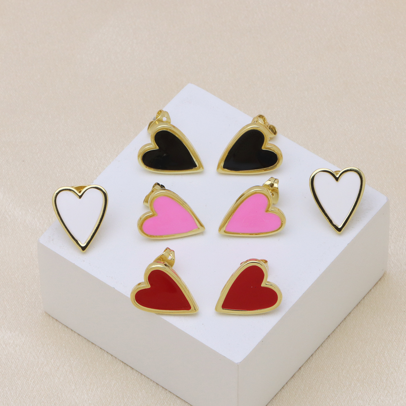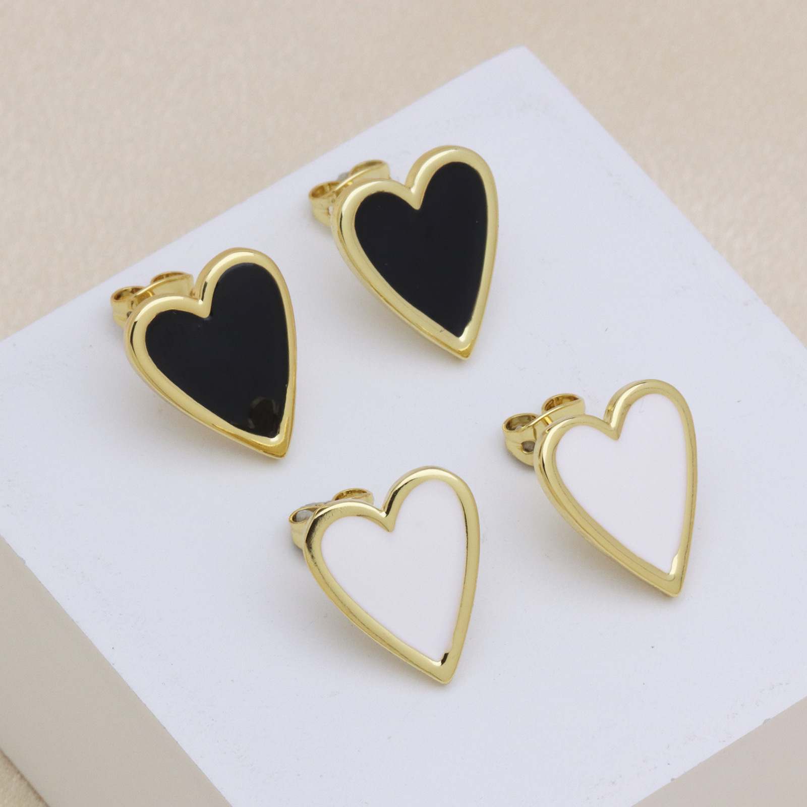 - laiton Boucles d’oreilles asymétriques stud, Placage de couleur platine, bijoux de mode & émail